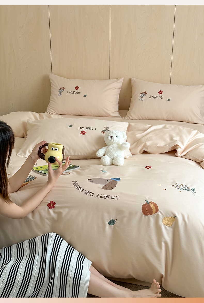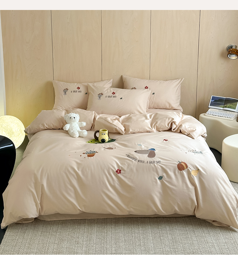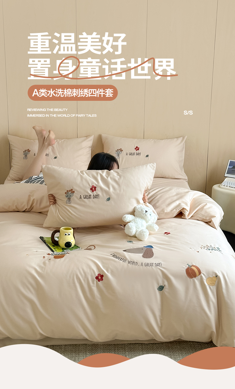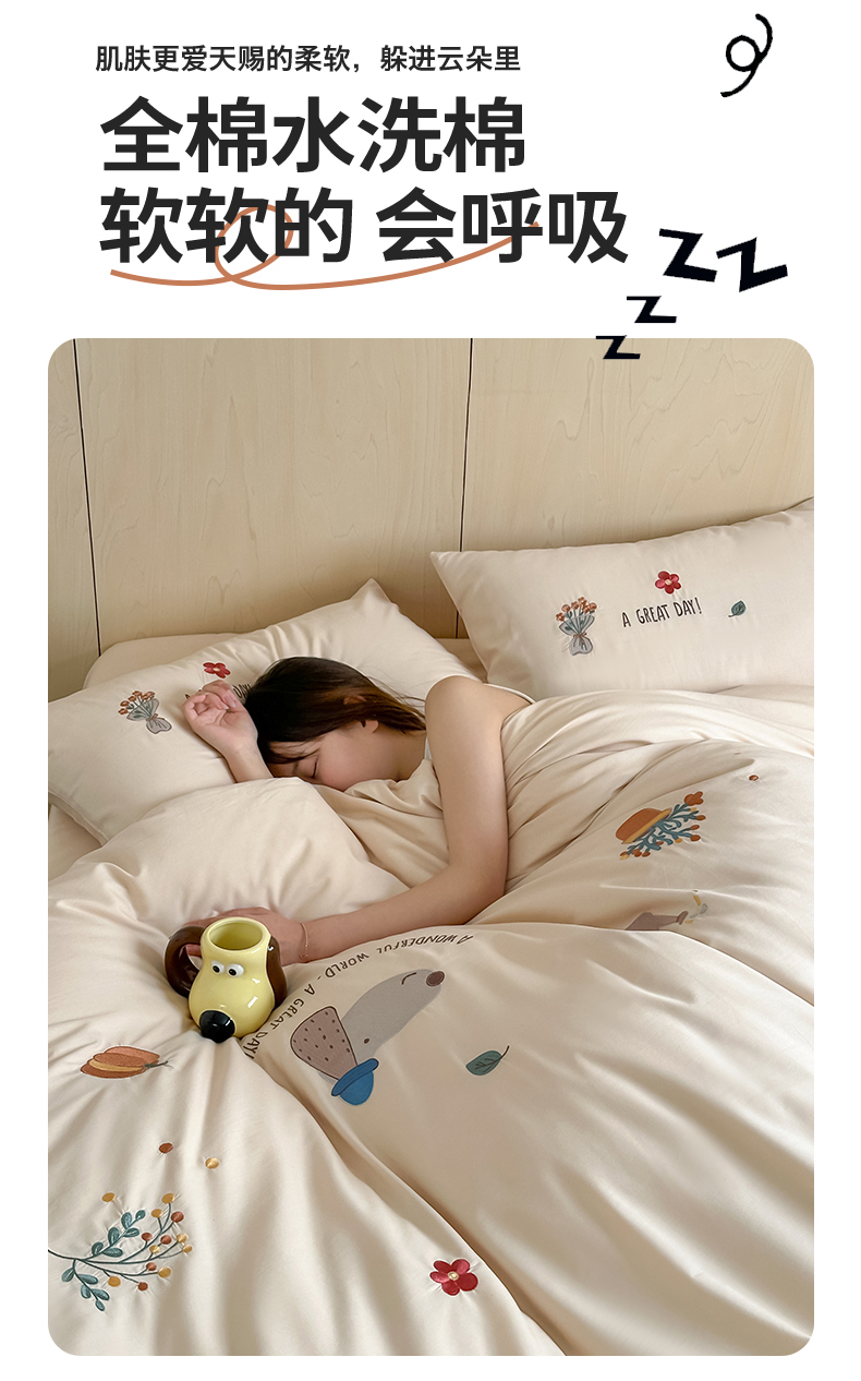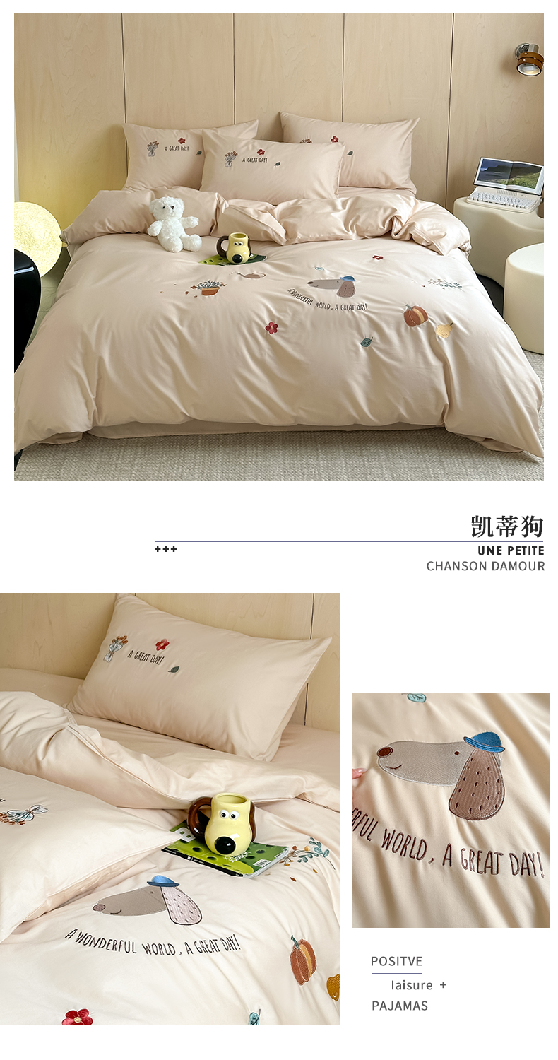 名品优仓 2024新款水洗棉刺绣款四件套 凯蒂狗