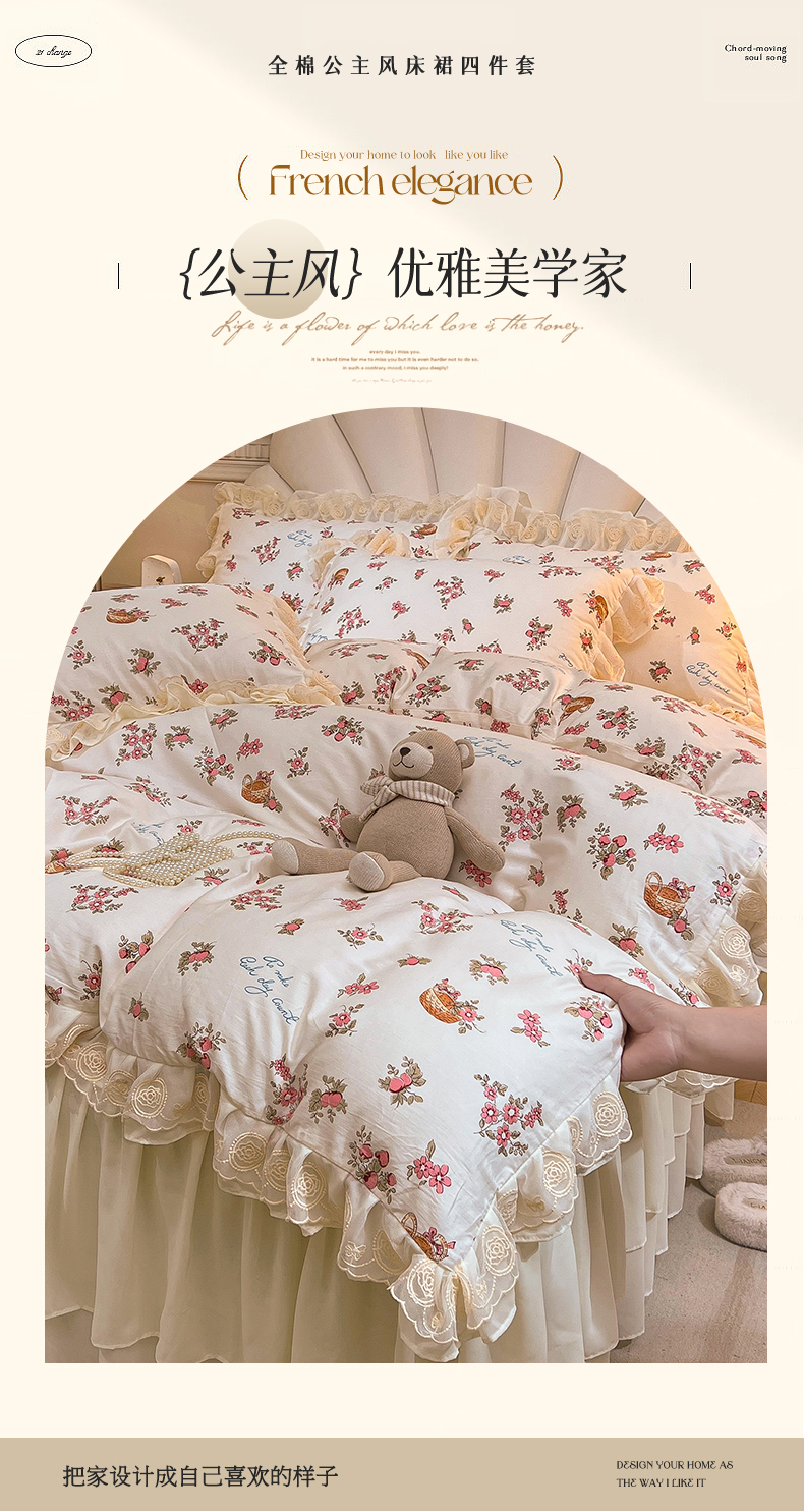 当前位置: 91家纺网 > 商品网购 > 床品套件 > 四件套 > 全棉普通四件套 > 恒爱家纺 2024新款梦幻情缘全棉公主风四件套 浪漫唯美