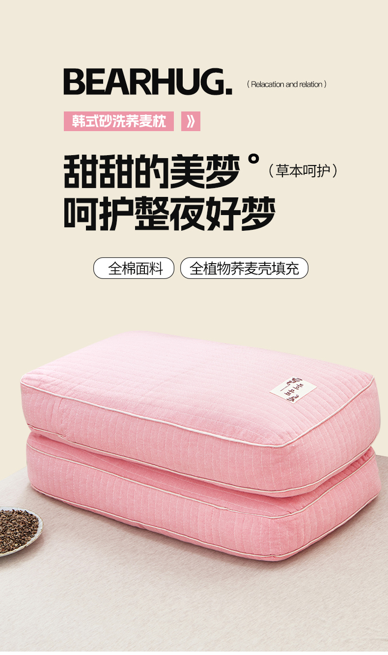 当前位置: 91家纺网 > 商品网购 > 枕头/枕芯/保健枕/颈椎枕 > 梦叶草 2024新款全棉韩式砂洗全荞麦枕芯 韩式砂洗荞麦枕-粉色40*60cm/只