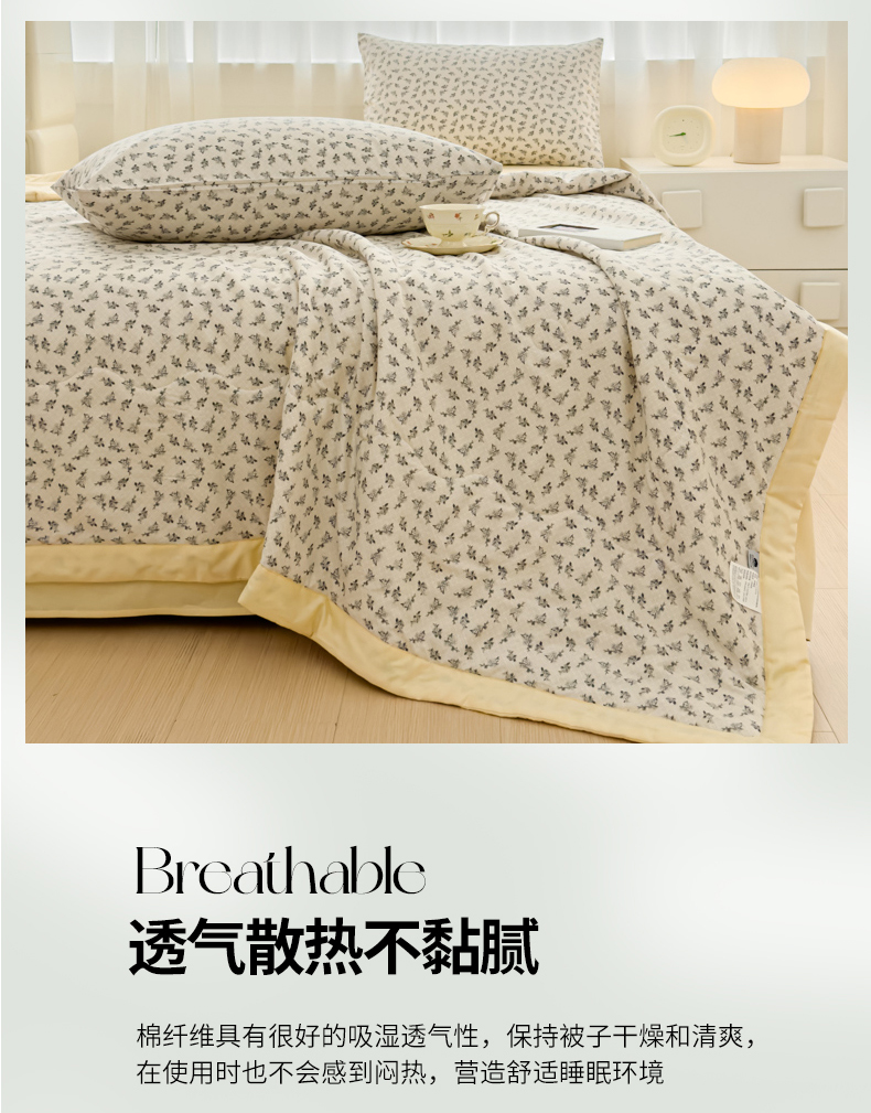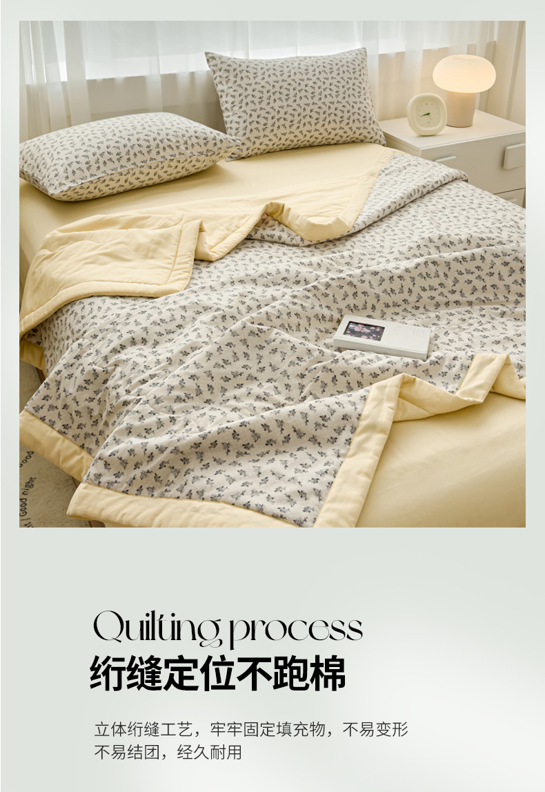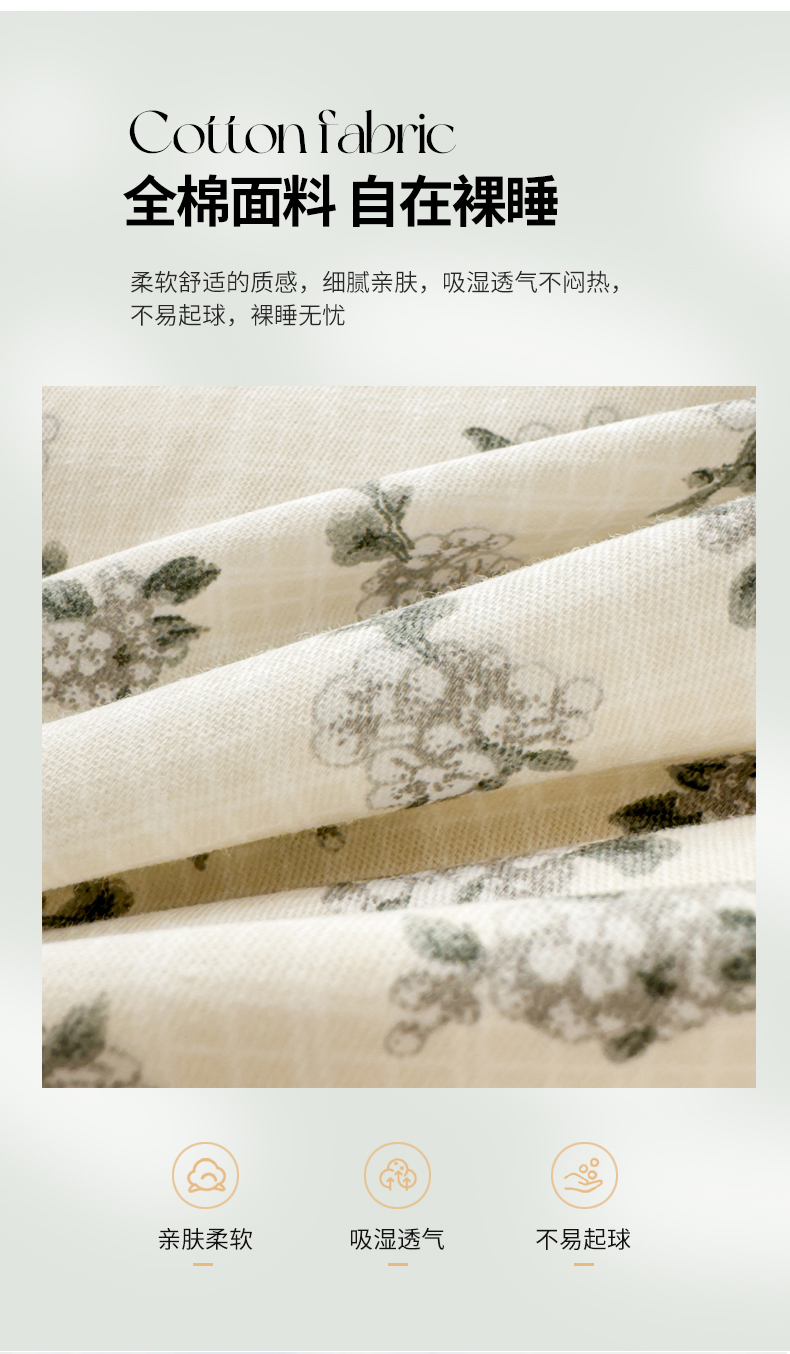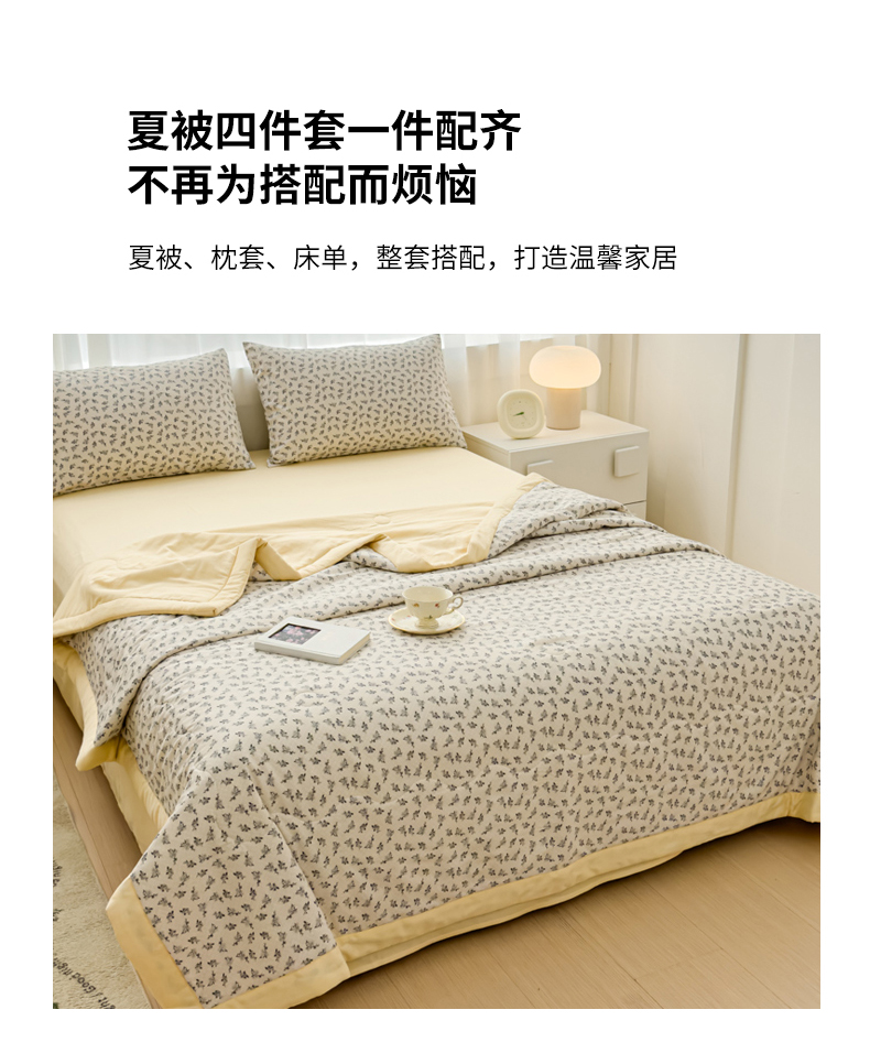 商品名称:金丝鸟家纺 2024新款全棉棉花夏被四件套 米色小花