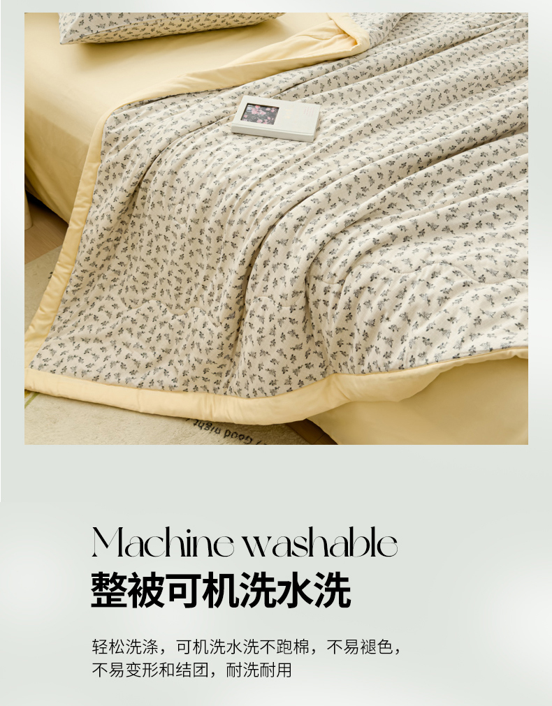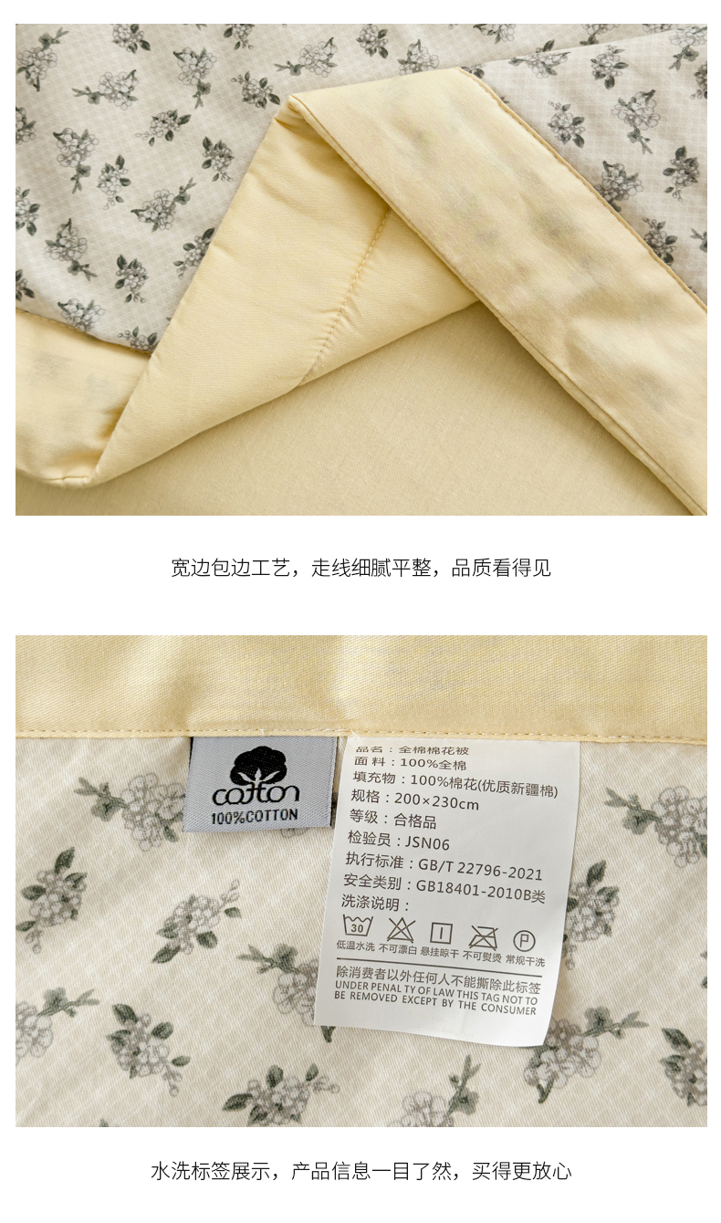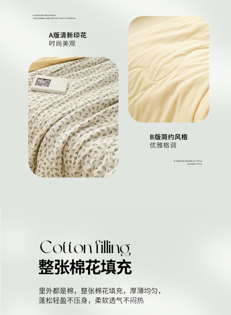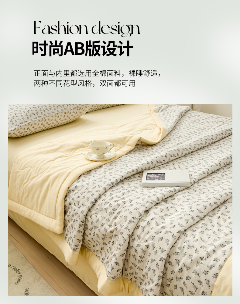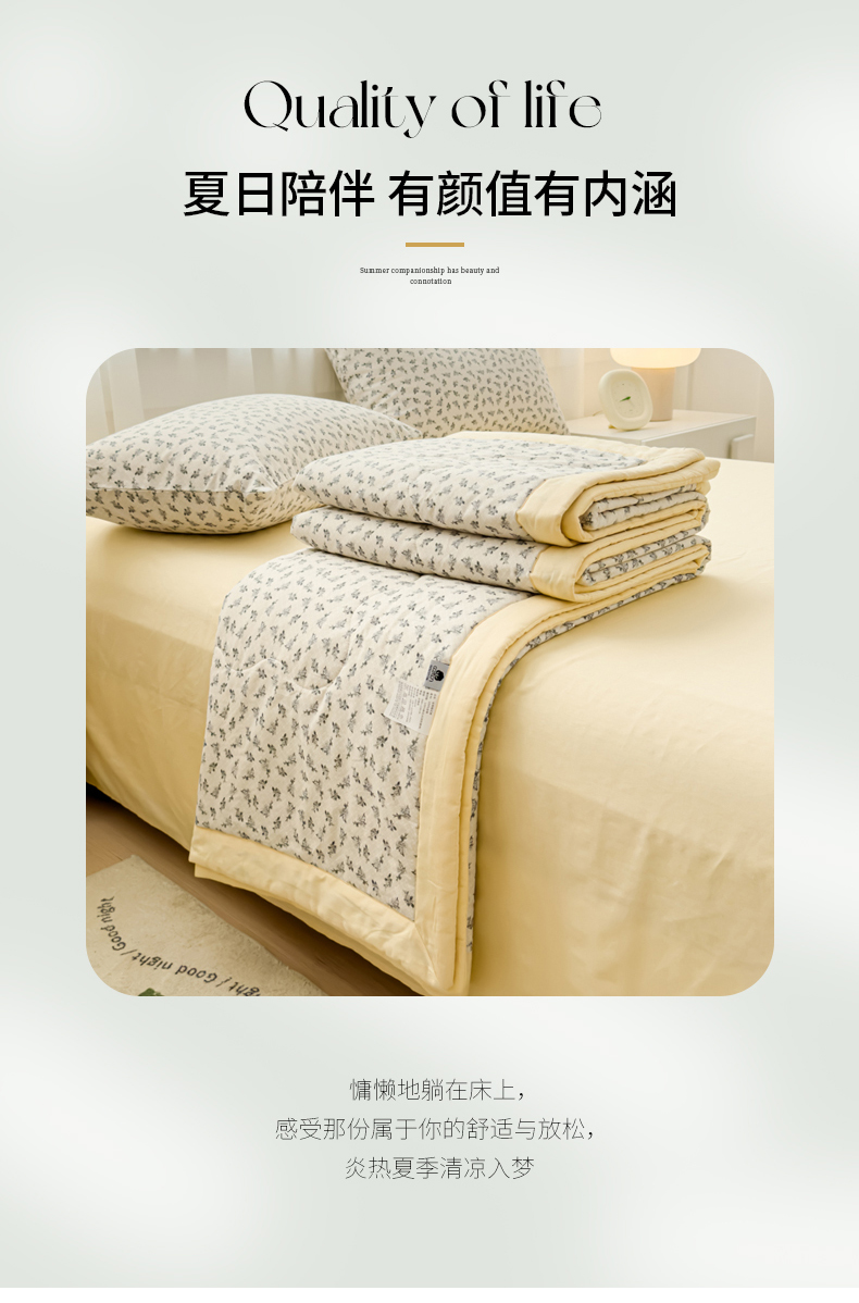 商品名称:金丝鸟家纺 2024新款全棉棉花夏被四件套 米色小花