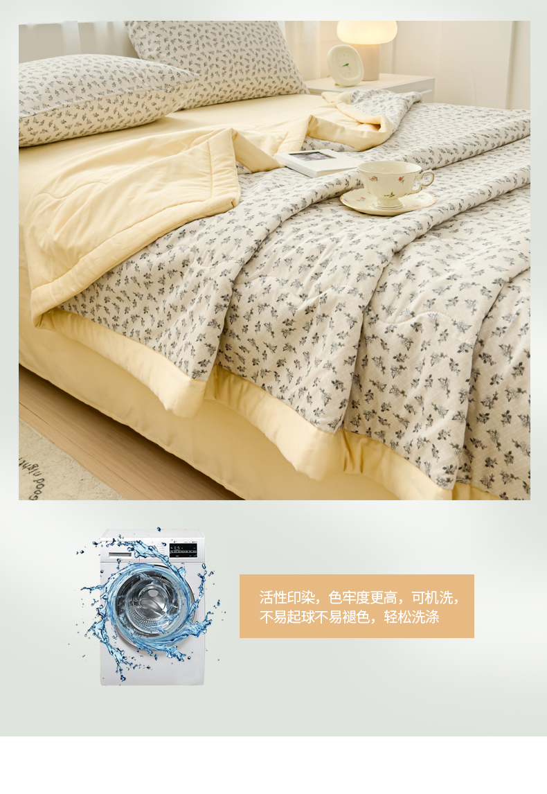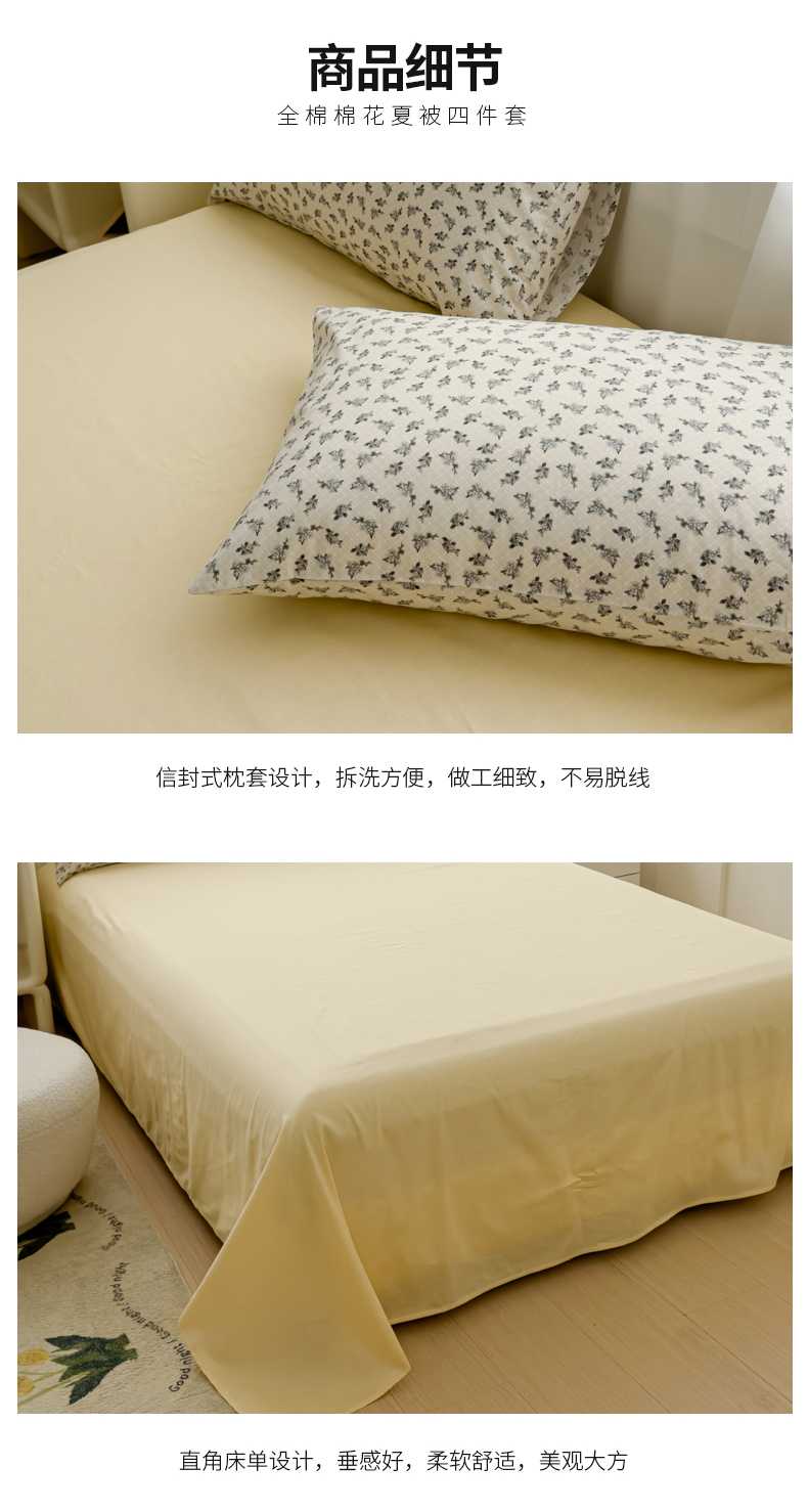 金丝鸟家纺 2024新款全棉棉花夏被四件套 米色小花