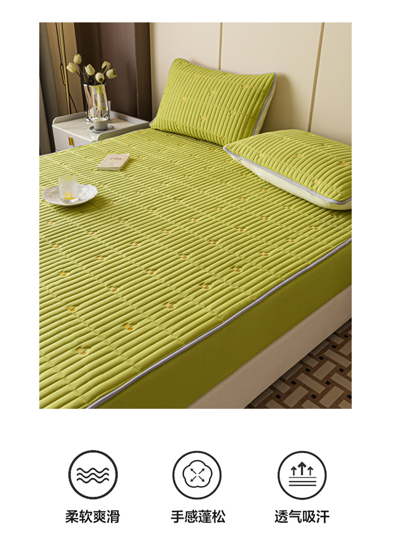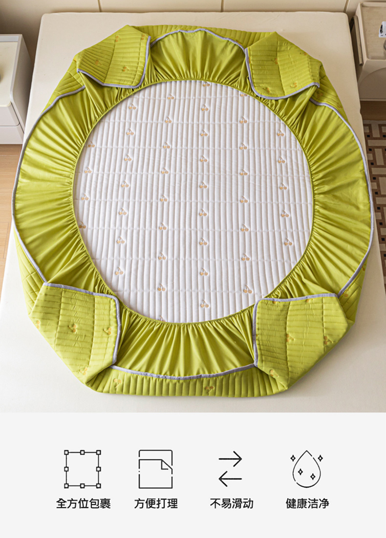 • 91家纺网 家纺一手货源 找家纺 暖季家纺 2025新款磨毛刺绣款床笠 小樱桃-果绿