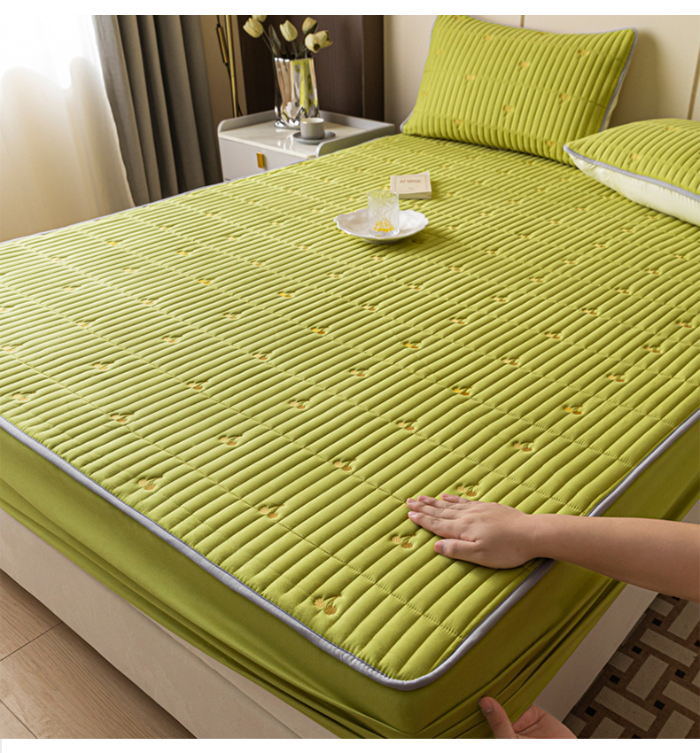 暖季家纺 2025新款磨毛刺绣款床笠 小樱桃-果绿