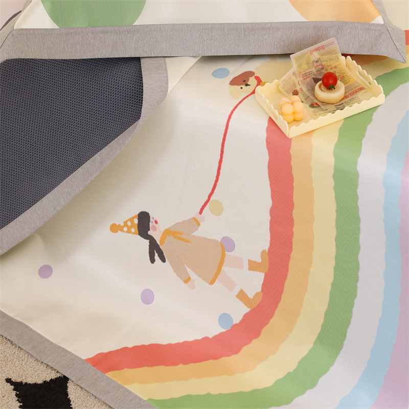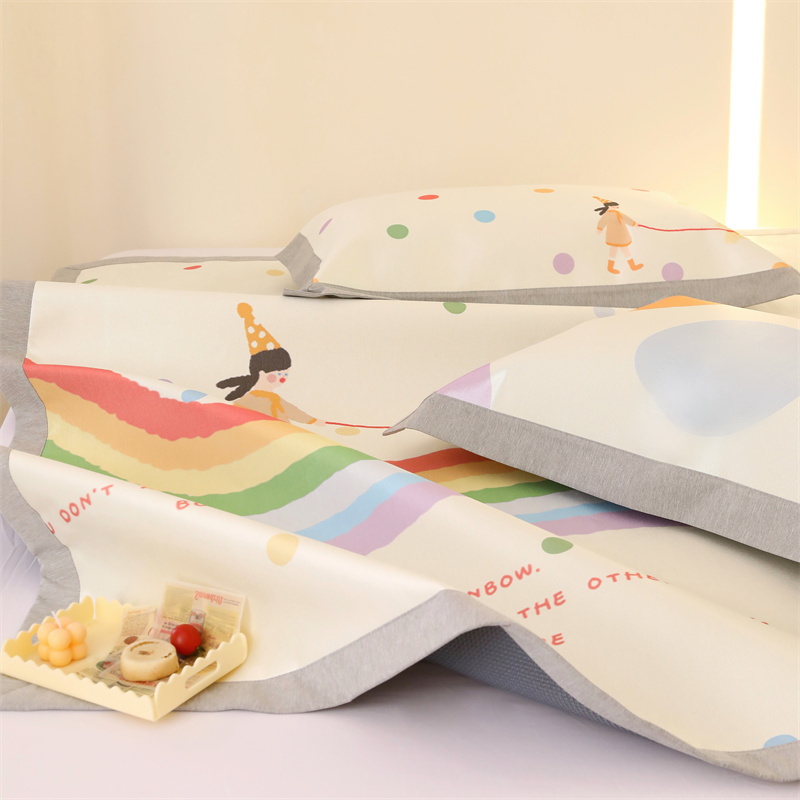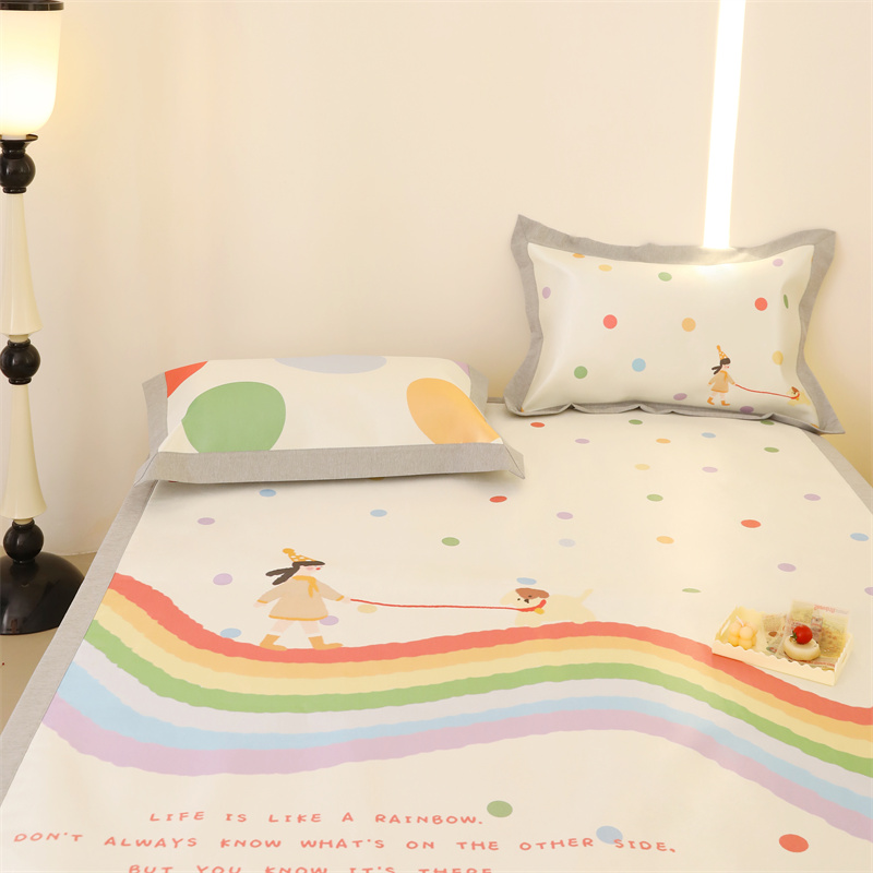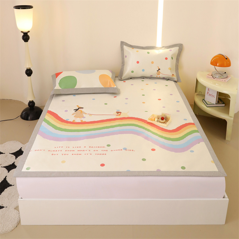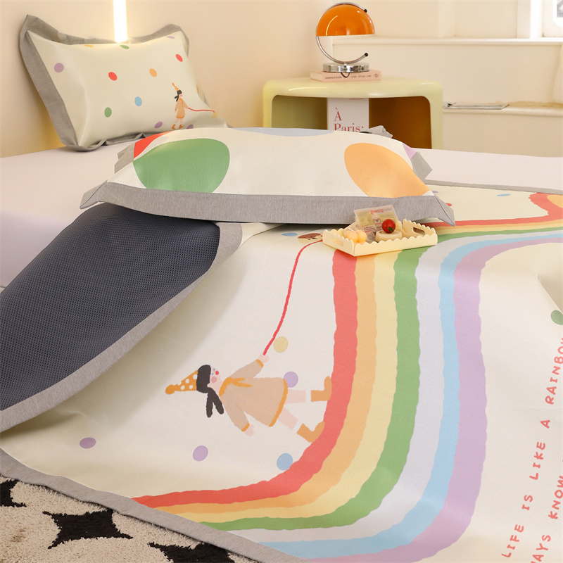 商品名称:JUICY 橘滋家纺 2024新款高级感卡通可爱数码印花冰丝席(场景二) 波点彩虹