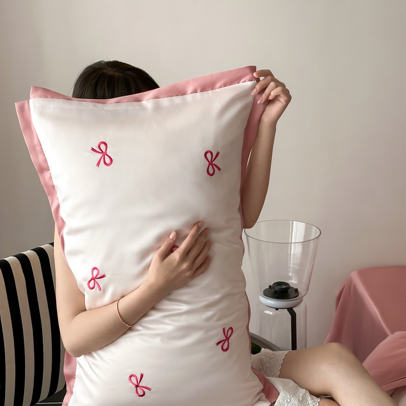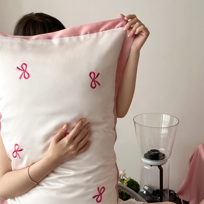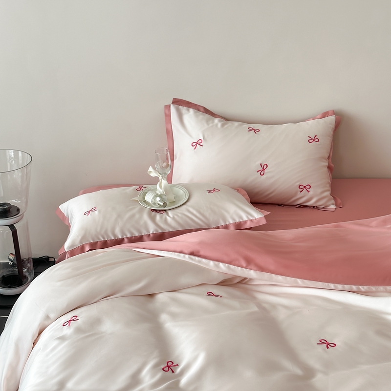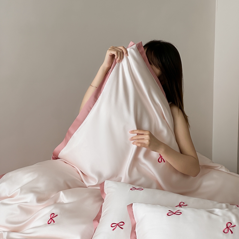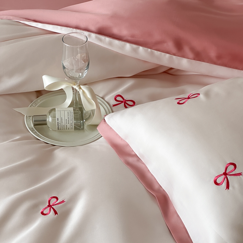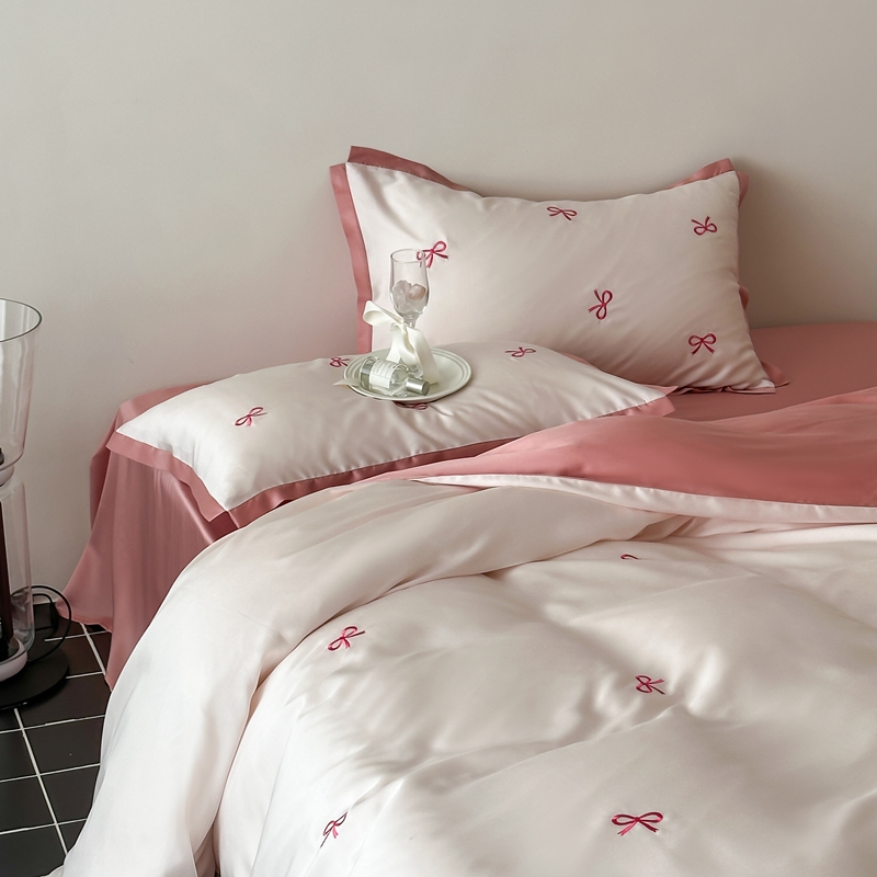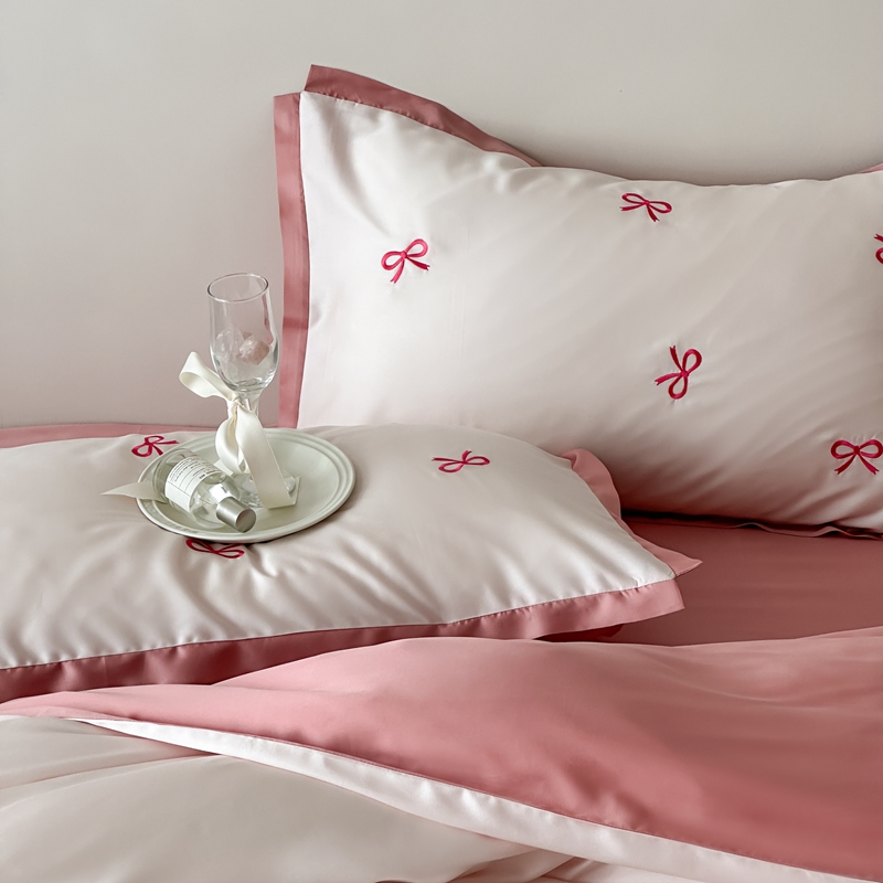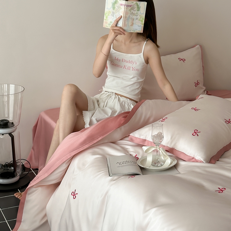 西西家居 2024新款兰精天丝蝴蝶结款四件套 蝴蝶结-红豆