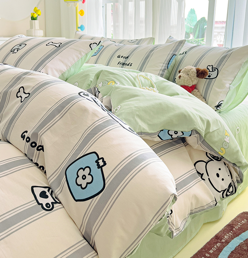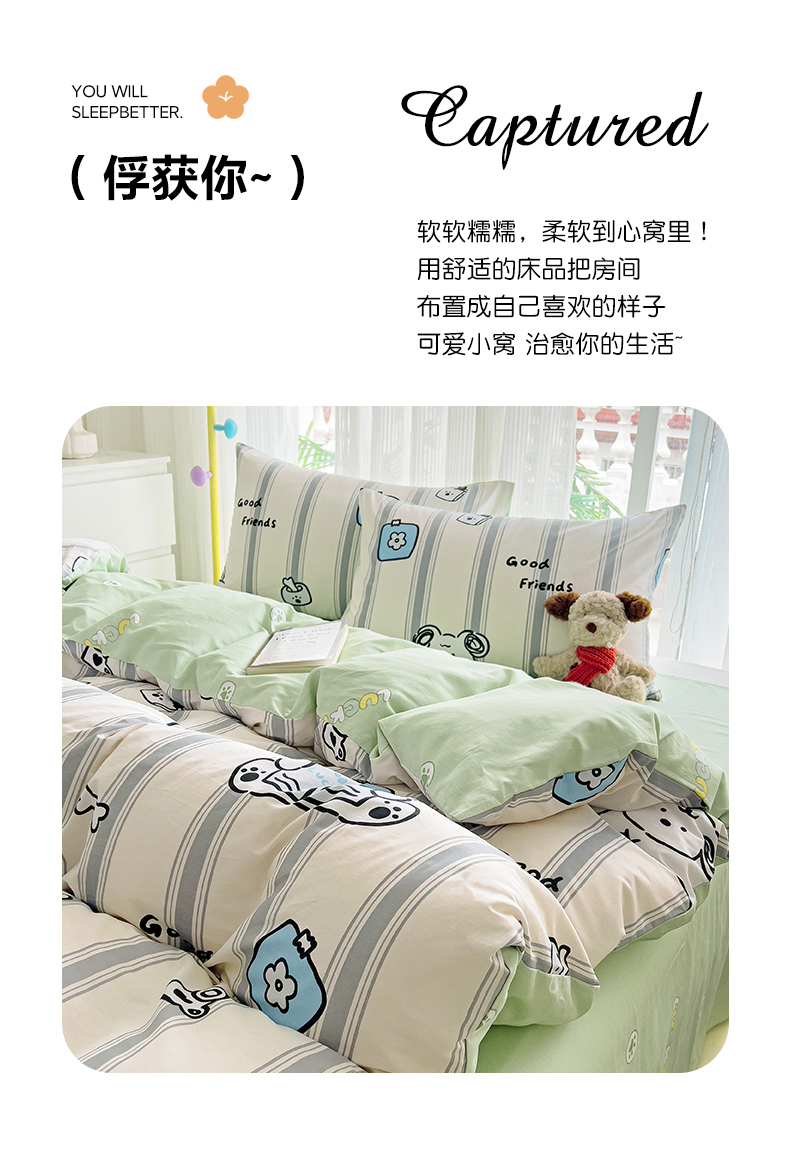 当前位置: 91家纺网 > 商品网购 > 床品套件 > 四件套 > 全棉普通四件套 > 优选良品 2025直播爆款全棉12868印花四件套纯棉学生三件套床笠 小狗博士