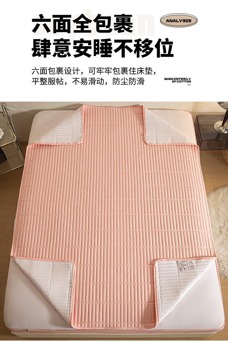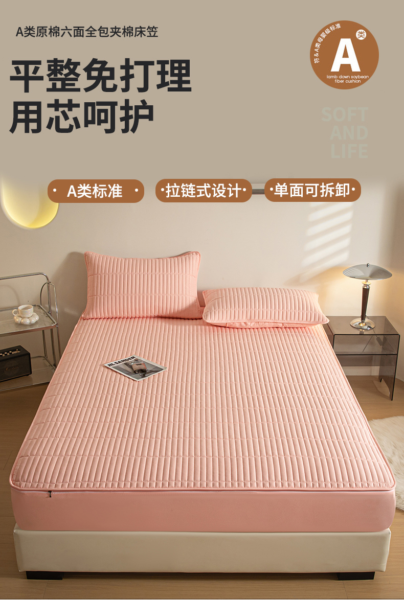 • 91家纺网 家纺一手货源 找家纺 雪云美 六面全包夹棉床笠拉链款A类原棉床垫套子床罩 格韵-豆沙