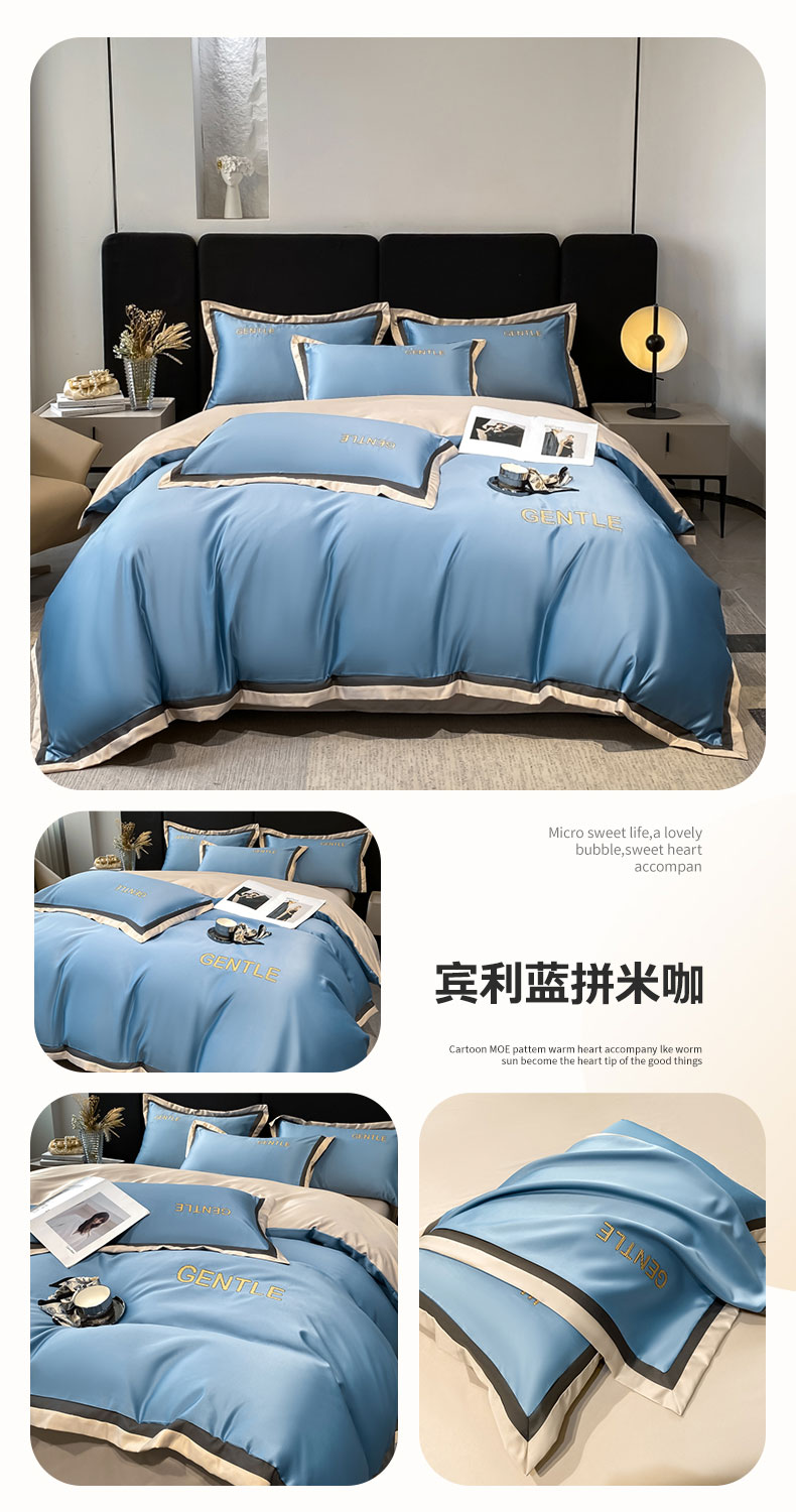 当前位置: 91家纺网 > 商品网购 > 床品套件 > 四件套 > 水洗真丝四件套 > 首尔家纺 2024新款水洗真丝四件套宽边款布达佩斯系列 布达佩斯-宾利蓝拼米咖