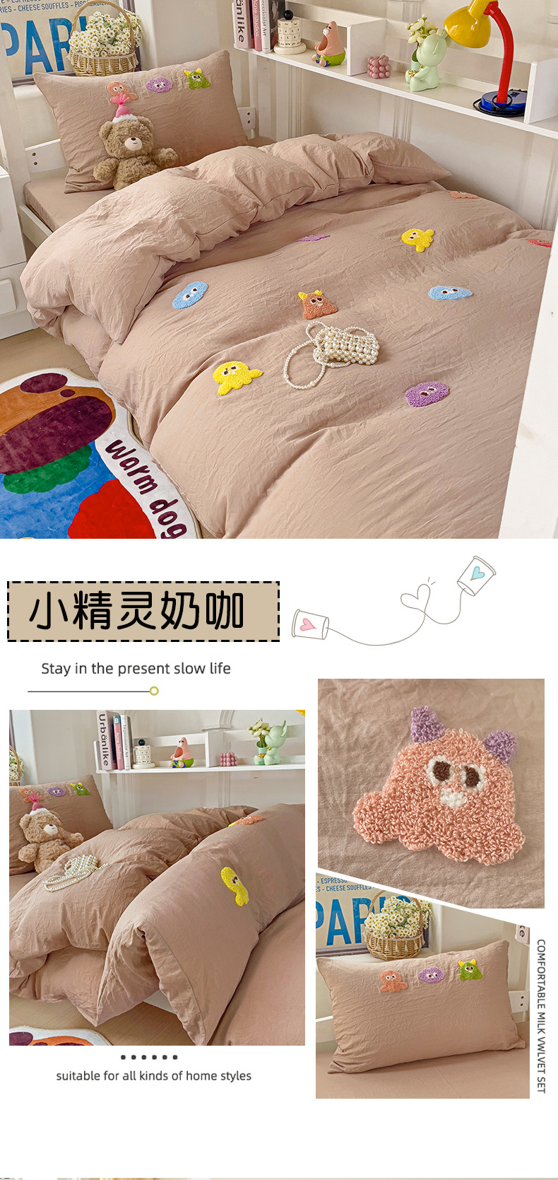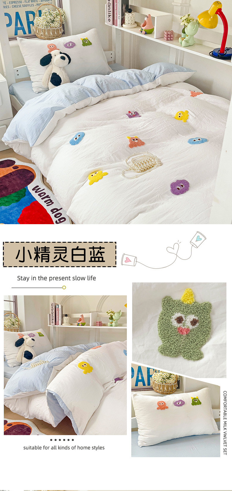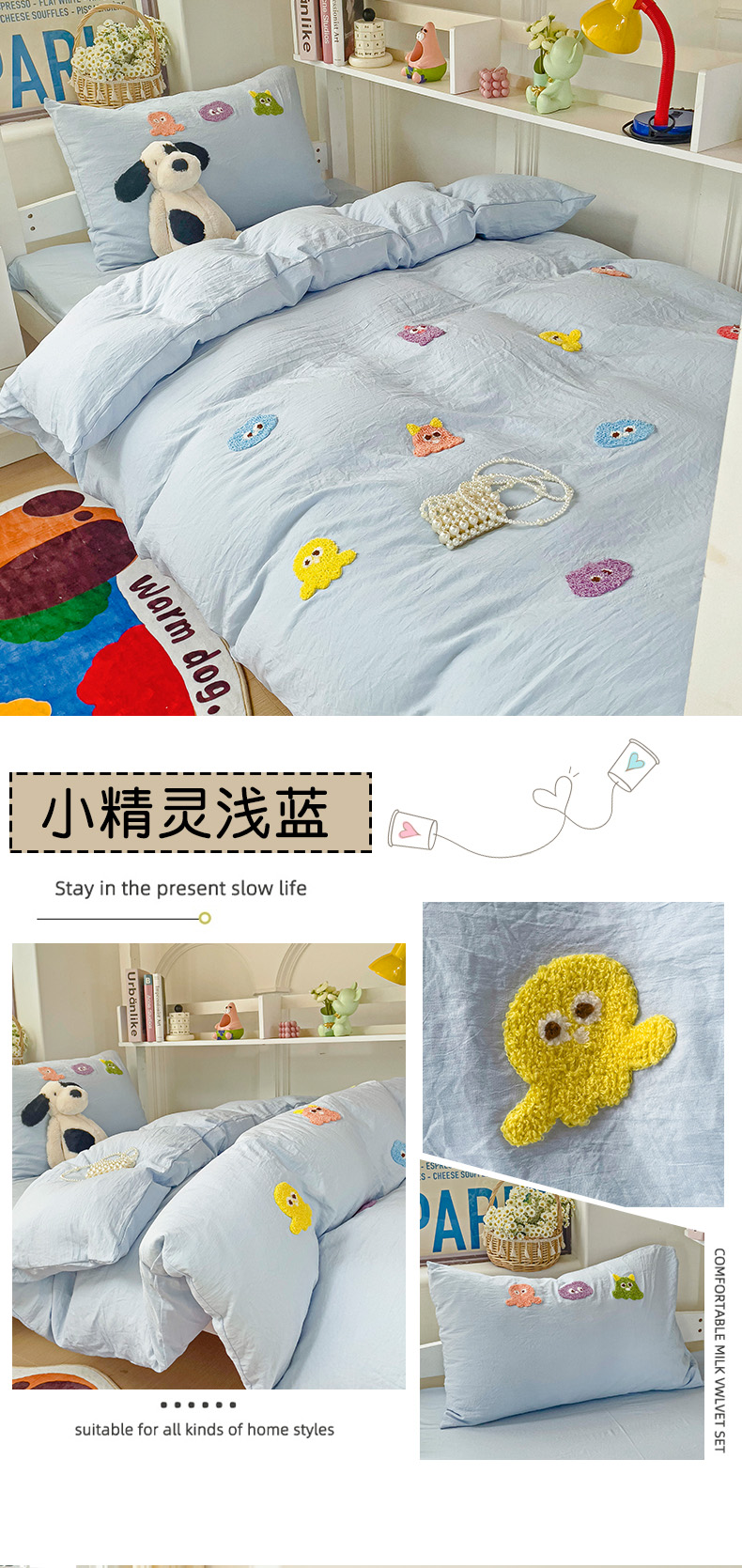 (总)韩巢家纺 2024新款超柔水洗棉毛巾绣学生宿舍上下铺单件被套-小精灵系列