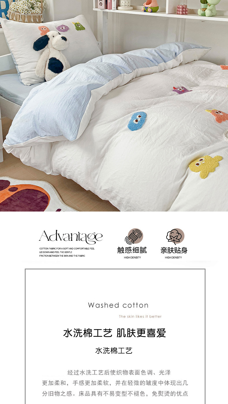 商品名称:(总)韩巢家纺 2024新款超柔水洗棉毛巾绣学生宿舍上下铺单件被套-小精灵系列