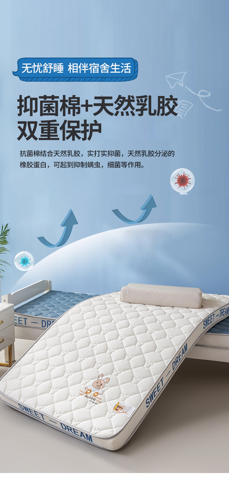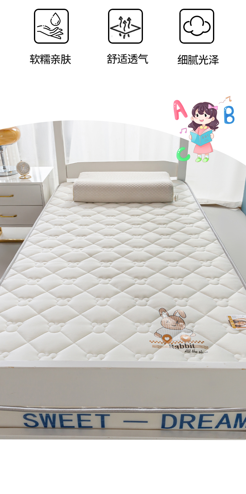 当前位置: 91家纺网 > 商品网购 > 床垫/床褥 > 乳胶床垫 > 元昊床垫 2025新款A类牛奶丝乳胶记忆海绵床垫 萌兔-米粒白
