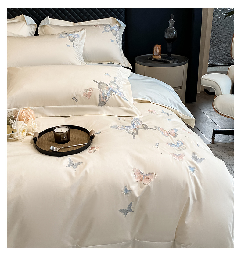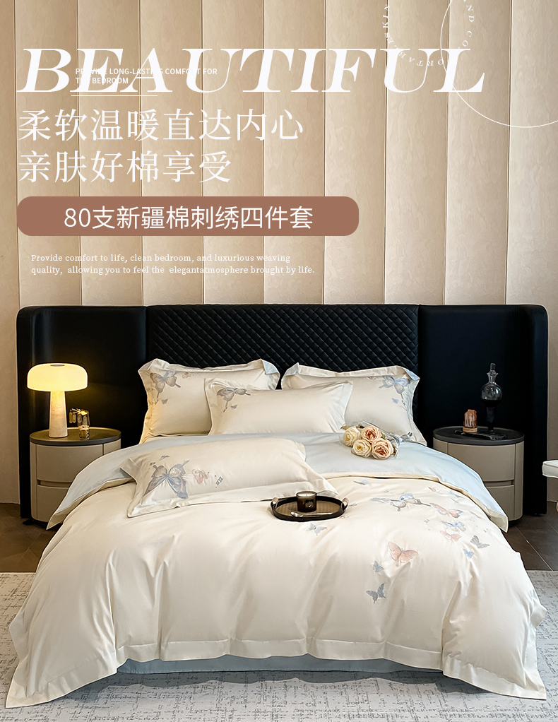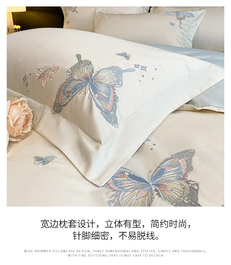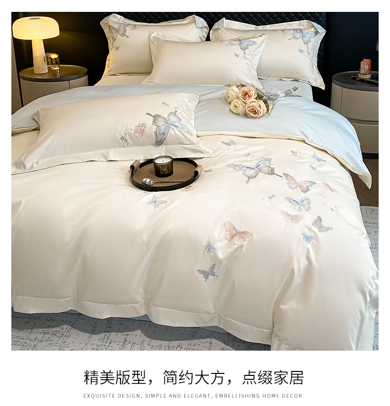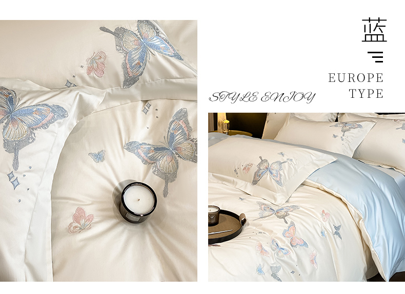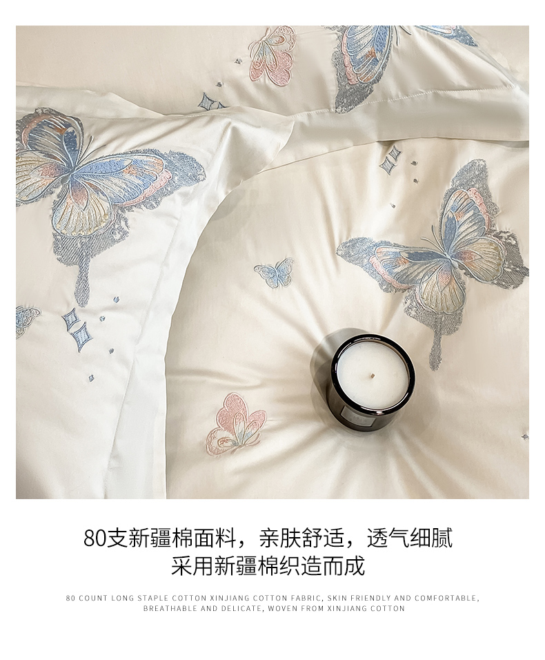 商品名称:爱缦 2024新款80支新疆棉四件套梦幻蝶舞系列 白蓝色