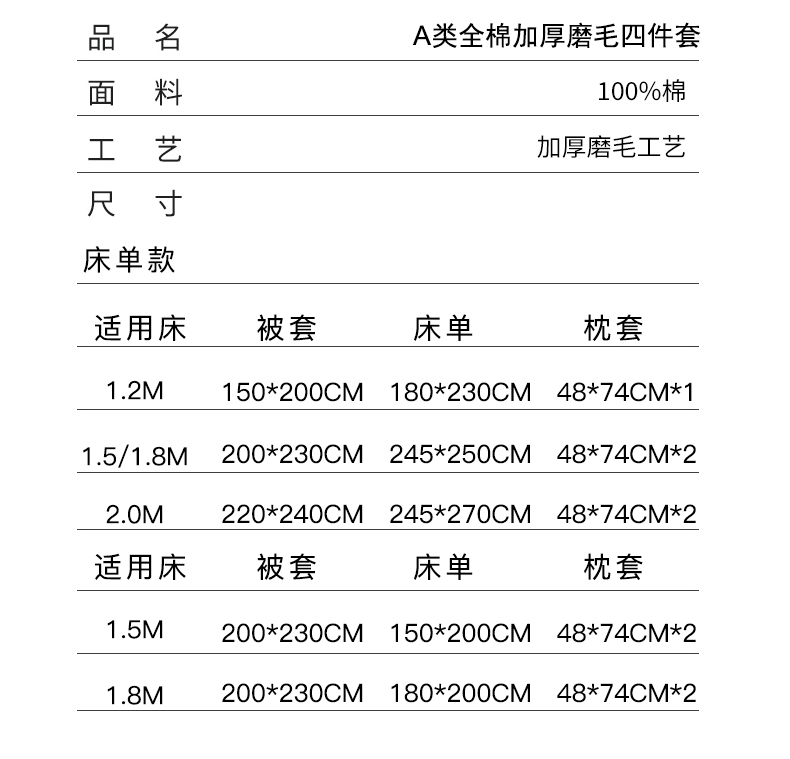 1.8m床单款四件套 | ¥155.00 |