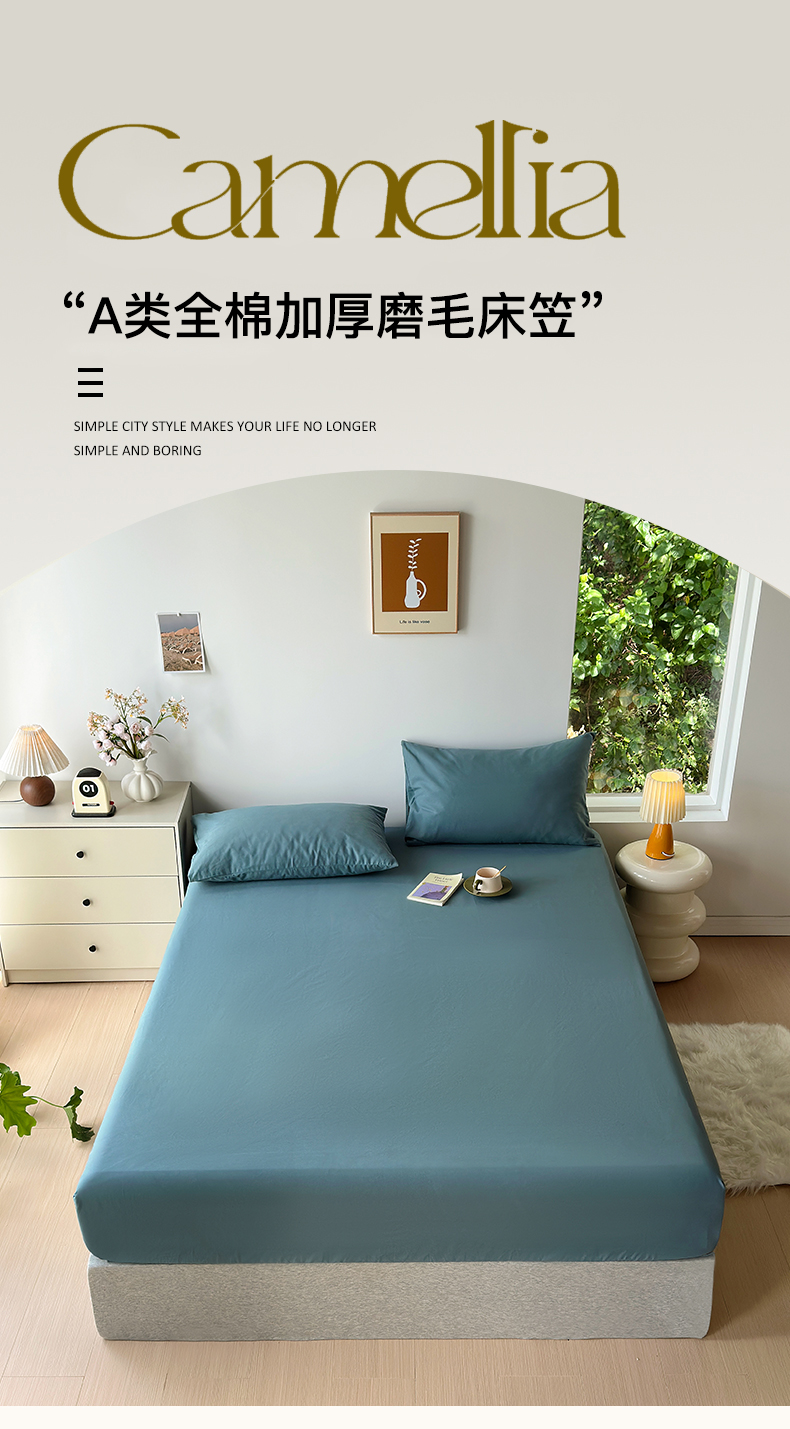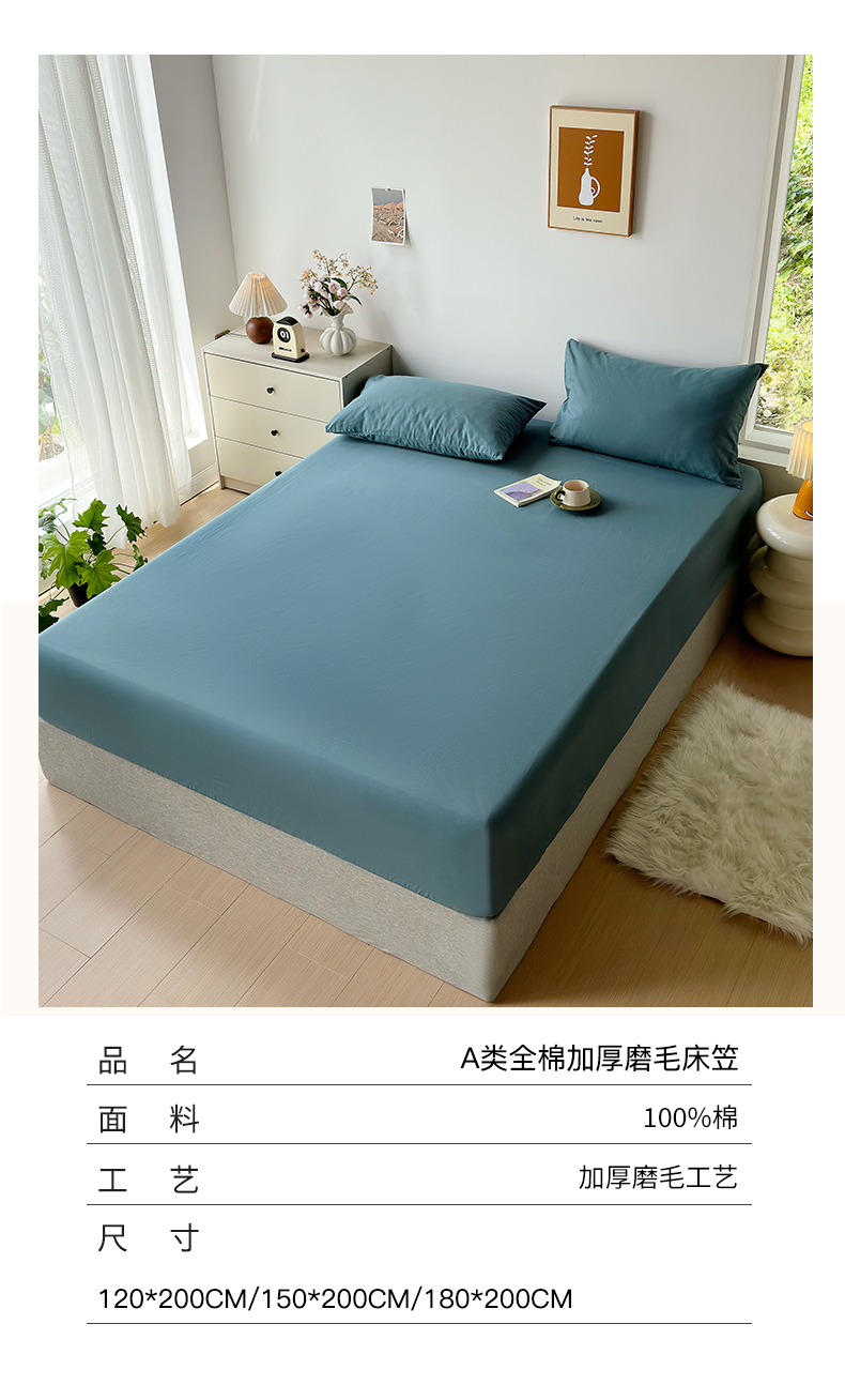 (总)绫韵家纺 2024秋冬新款A类全棉加厚磨毛混搭纯棉磨毛四件套系列-单床笠,大麦町,风信紫,光辉蓝,灰咖,橘红色,麦秆黄,米驼,青黛蓝,青灰,山茶粉,紫藤色