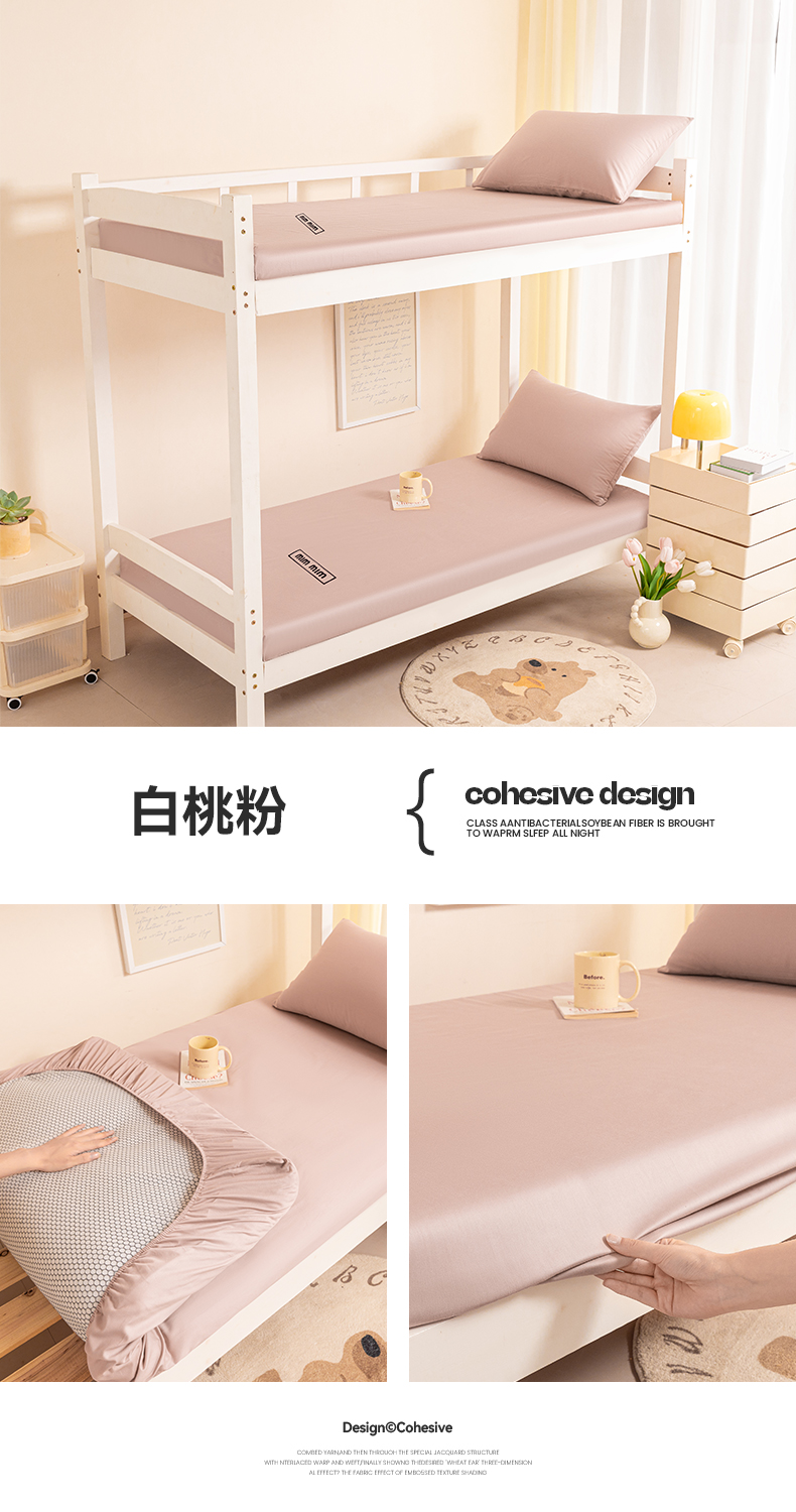 商品名称:寐眠 2024新款40支全棉刺绣学生床笠 白桃粉