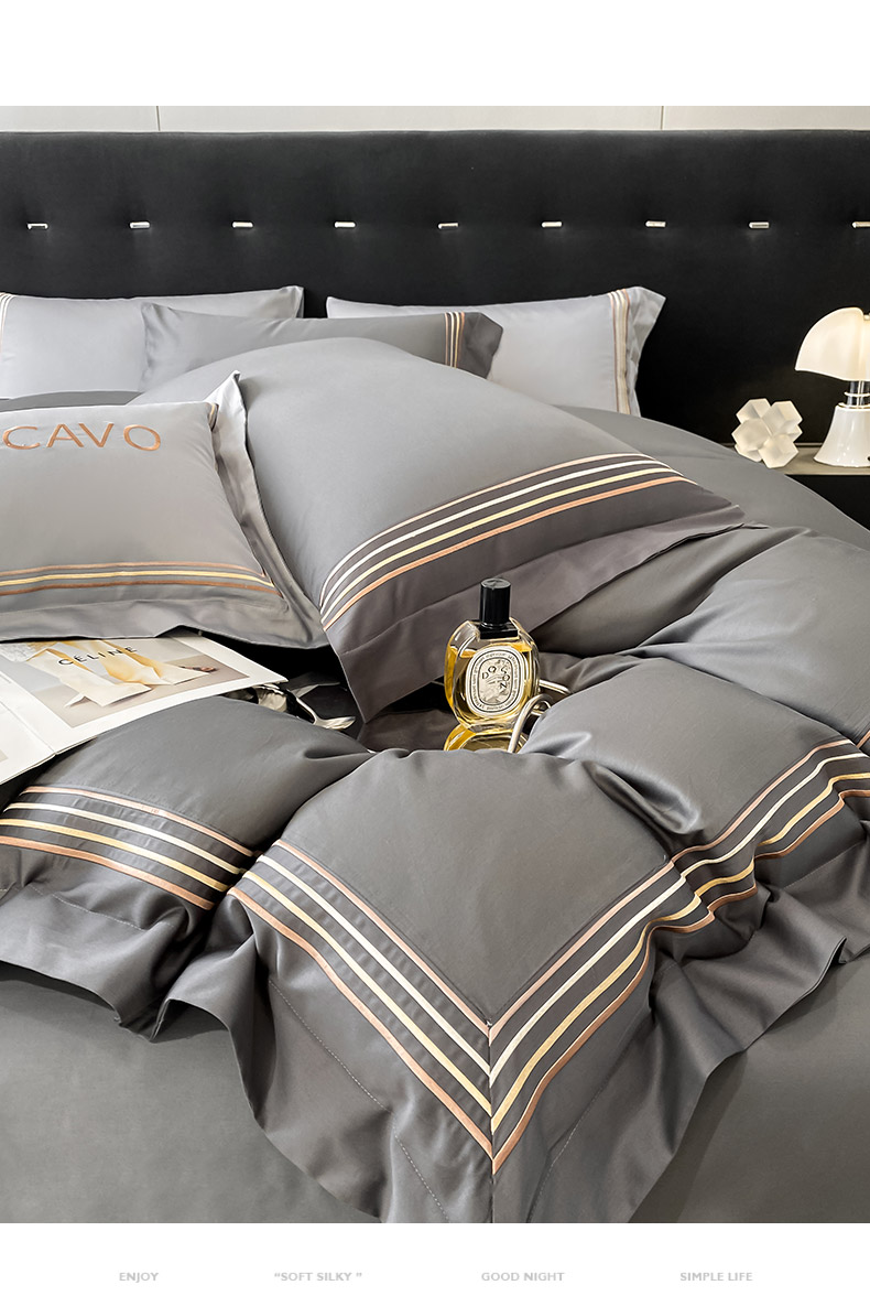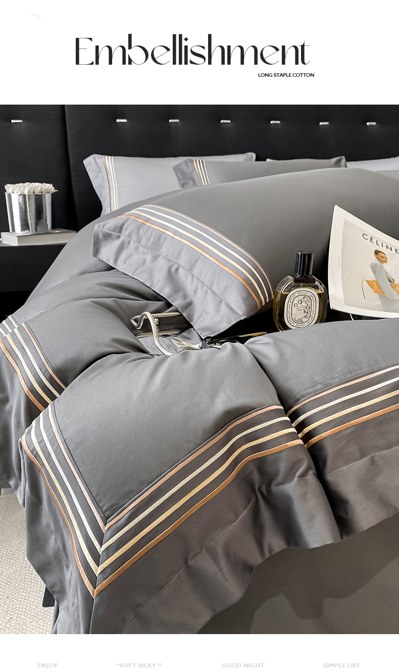 60支贡缎长绒棉四件套全棉纯棉新疆棉床单被套澳棉床笠款线条刺绣100支天丝棉床上用品 凯利-高级灰