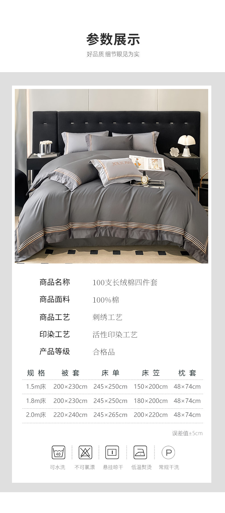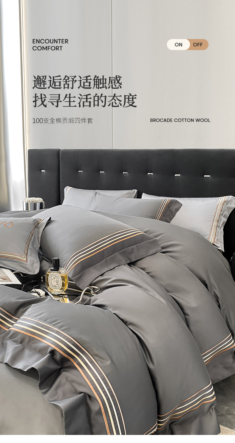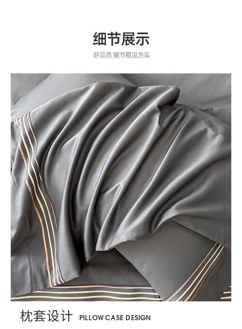 商品名称: 60支贡缎长绒棉四件套全棉纯棉新疆棉床单被套澳棉床笠款线条刺绣100支天丝棉床上用品 凯利-高级灰