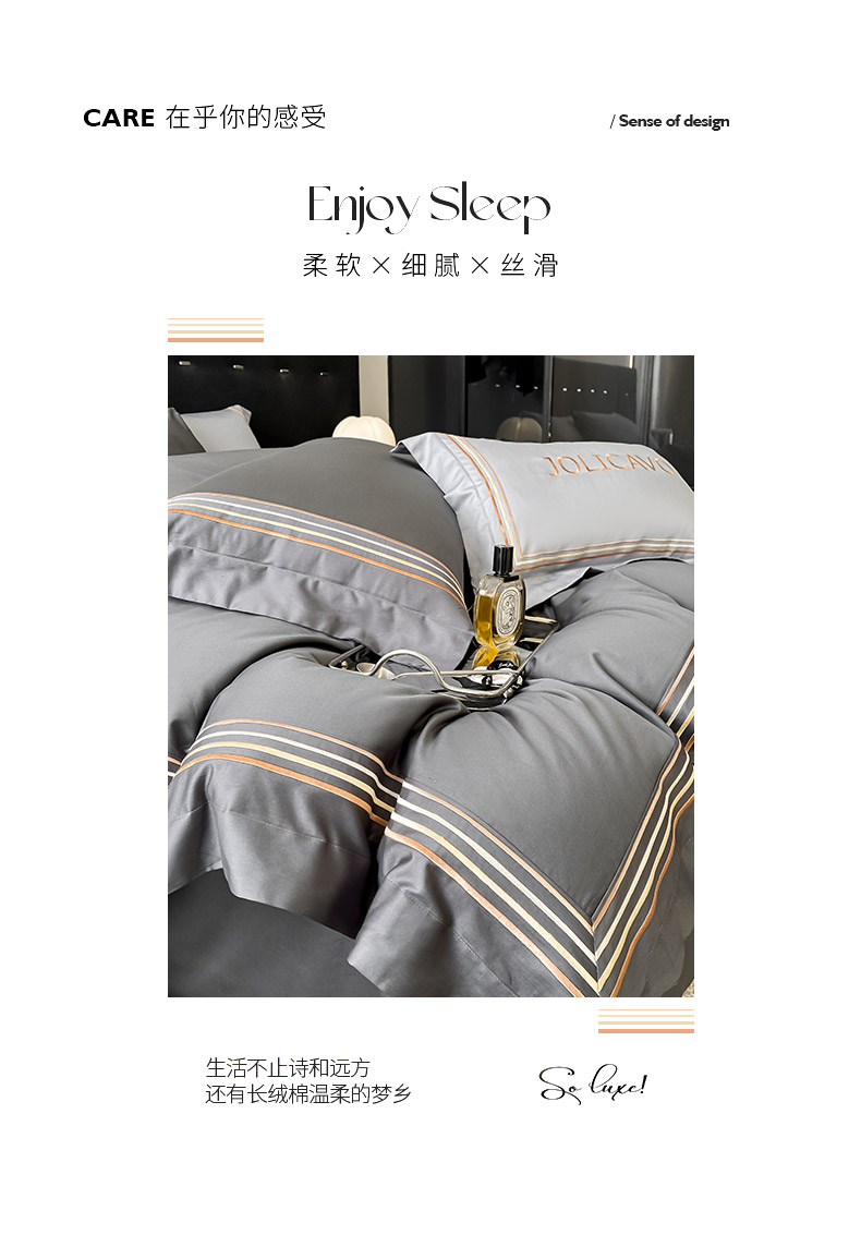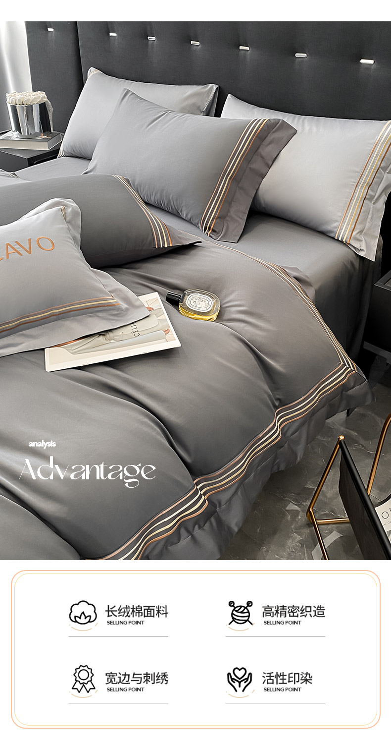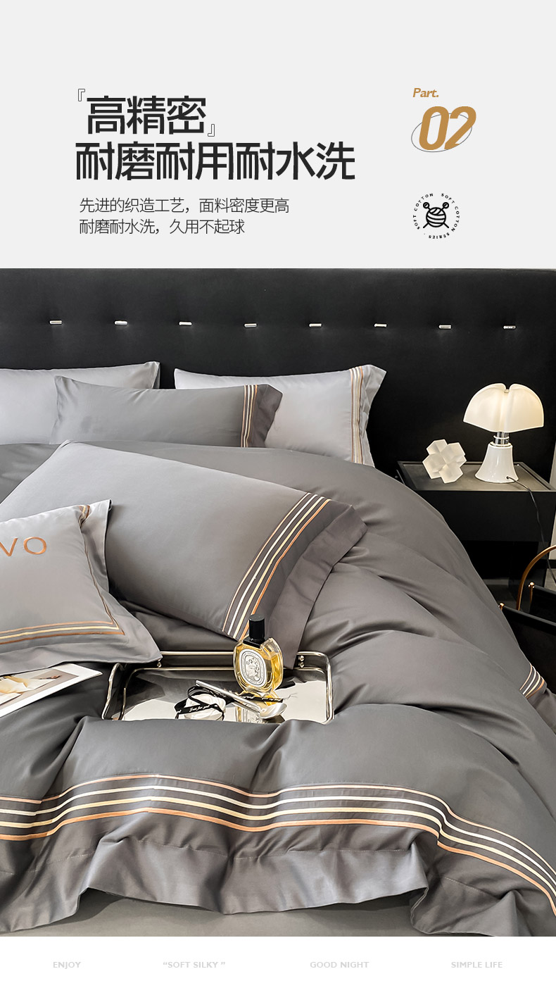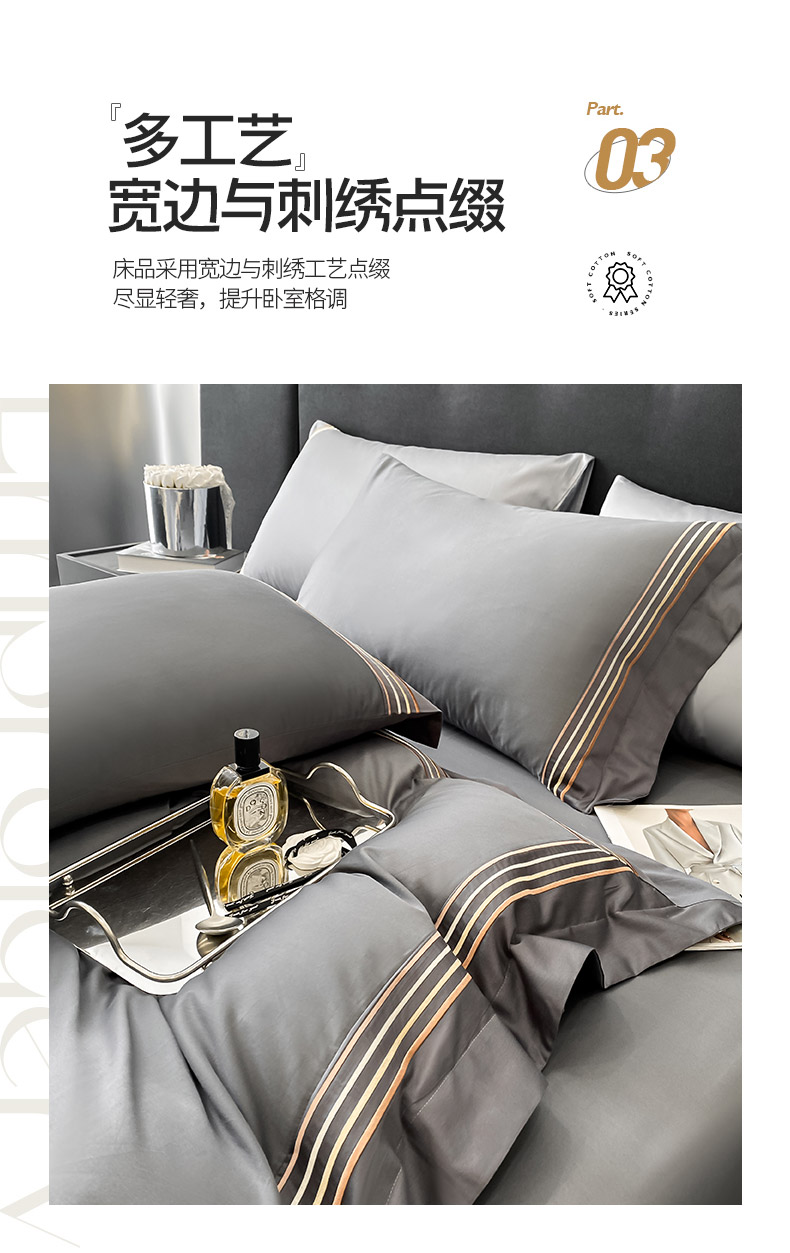 商品名称: 60支贡缎长绒棉四件套全棉纯棉新疆棉床单被套澳棉床笠款线条刺绣100支天丝棉床上用品 凯利-高级灰