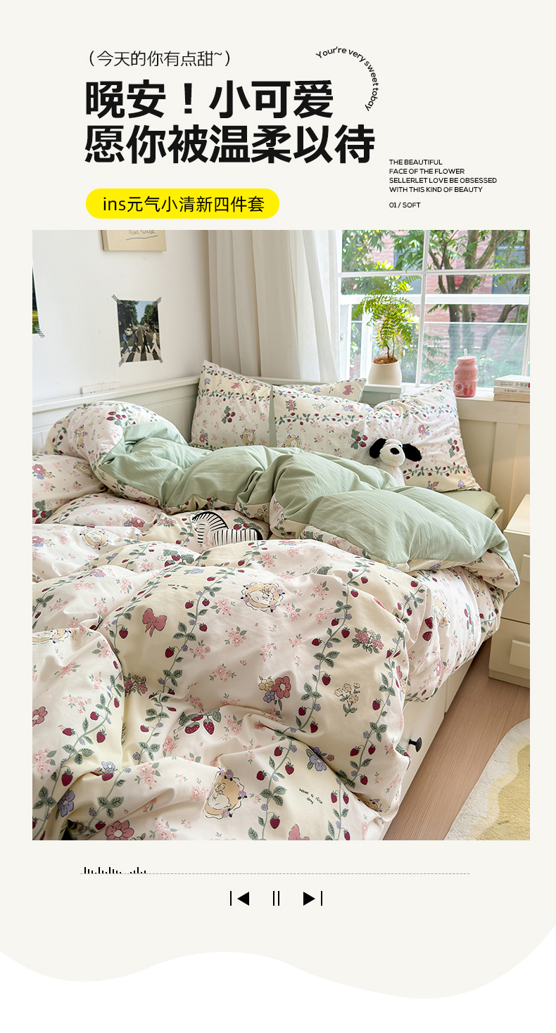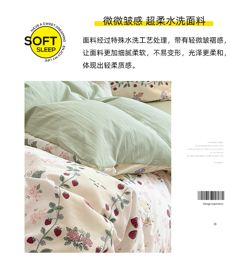 当前位置: 91家纺网 > 商品网购 > 床品套件 > 四件套 > 其它四件套 > 沐芷 2024微皱超柔手感105g印花水洗棉四件套床上宿舍三件套床单被套 奶味圆饼