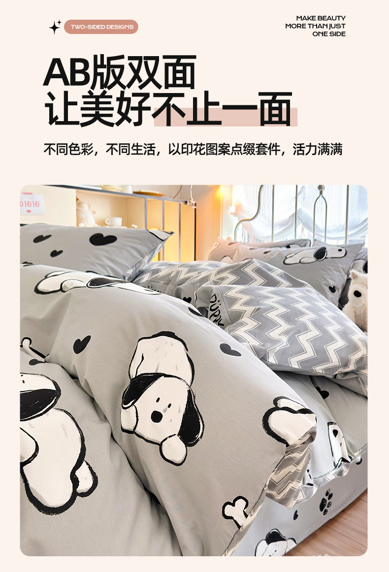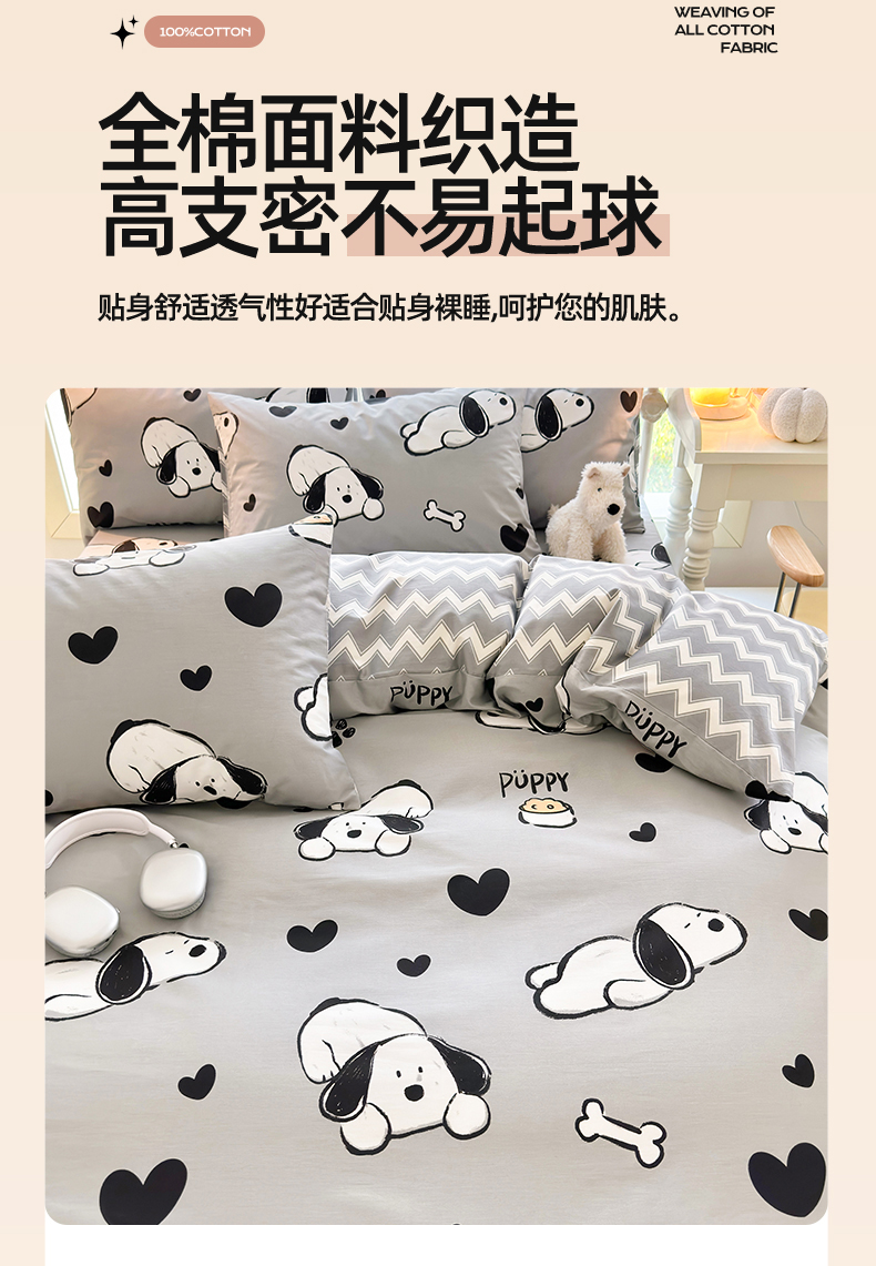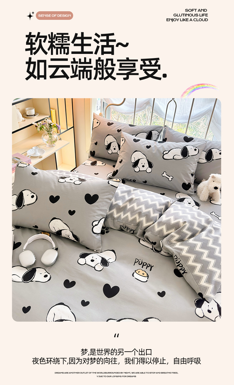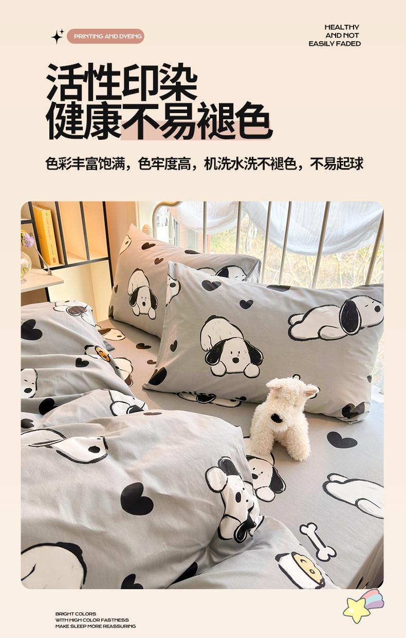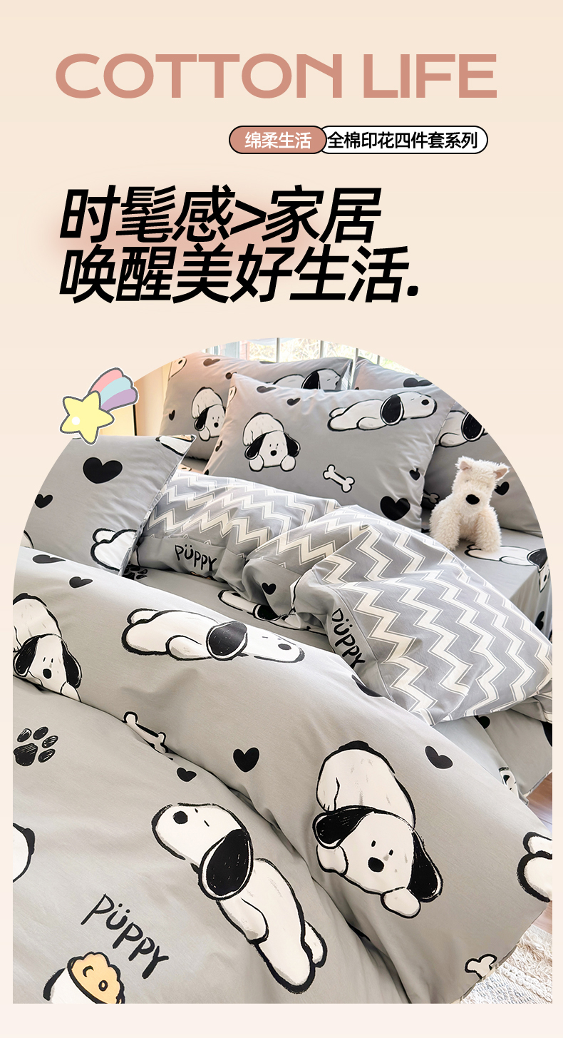 当前位置: 91家纺网 > 商品网购 > 床品套件 > 四件套 > 全棉普通四件套 > 名兮 2024新款全棉亲肤印花四件套 可爱萌宠