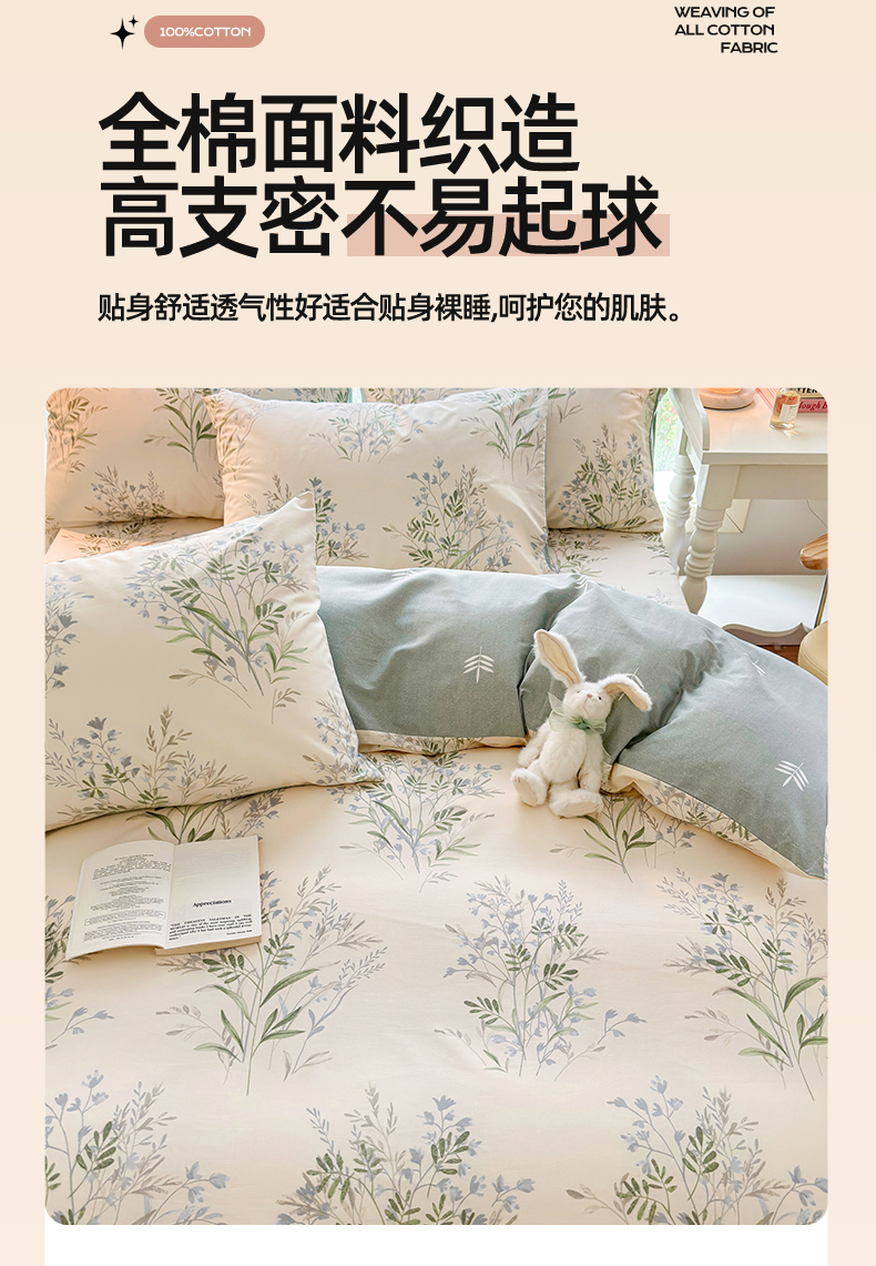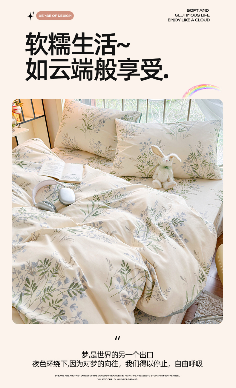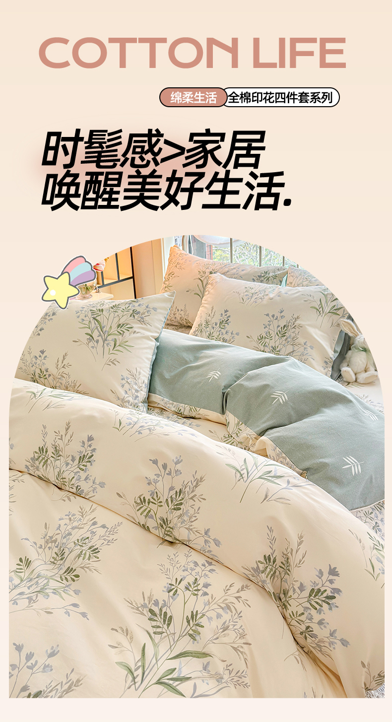 当前位置: 91家纺网 > 商品网购 > 床品套件 > 四件套 > 全棉普通四件套 > 名兮 2024新款全棉亲肤印花四件套 幽幽仙草