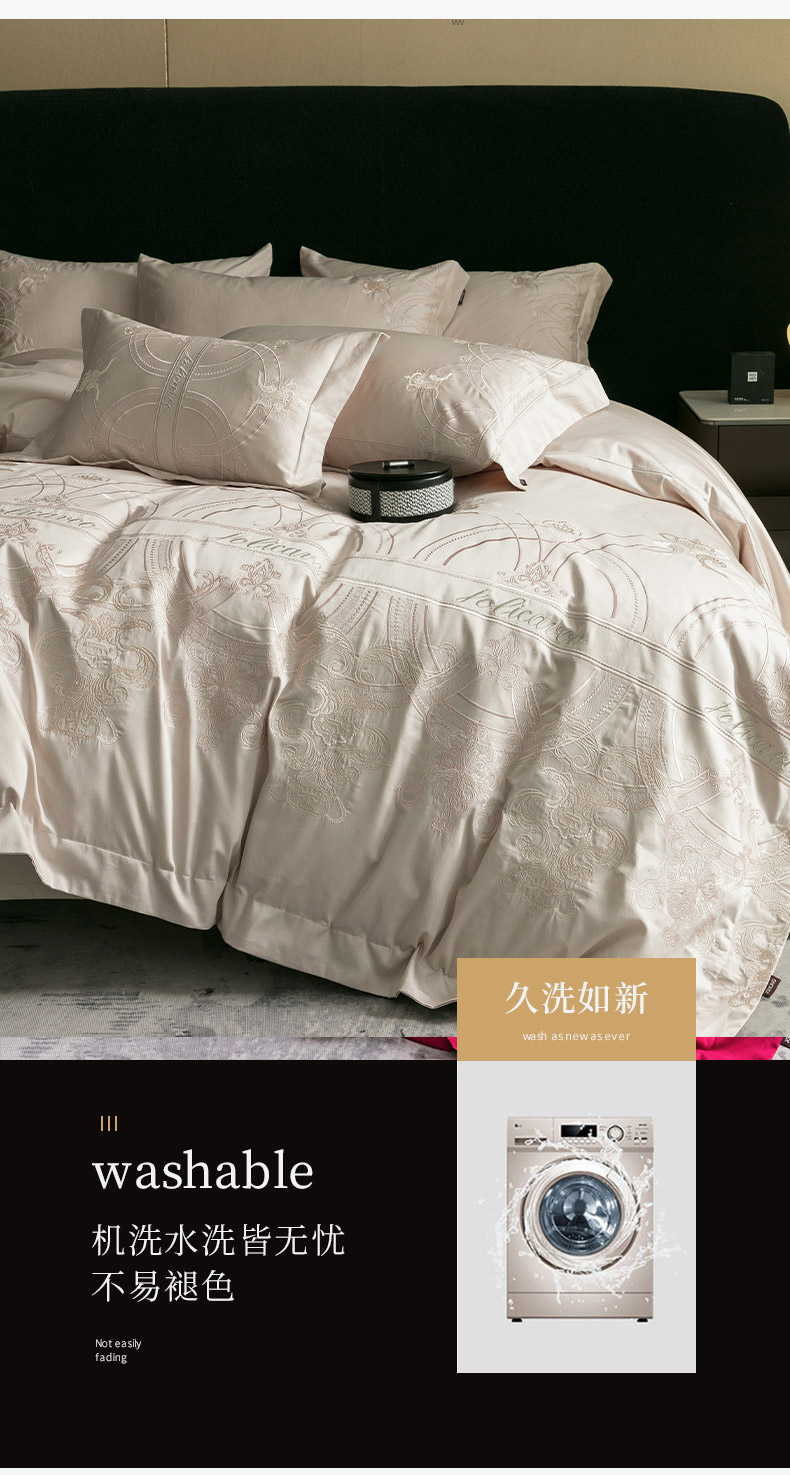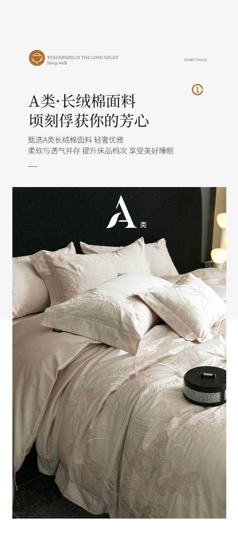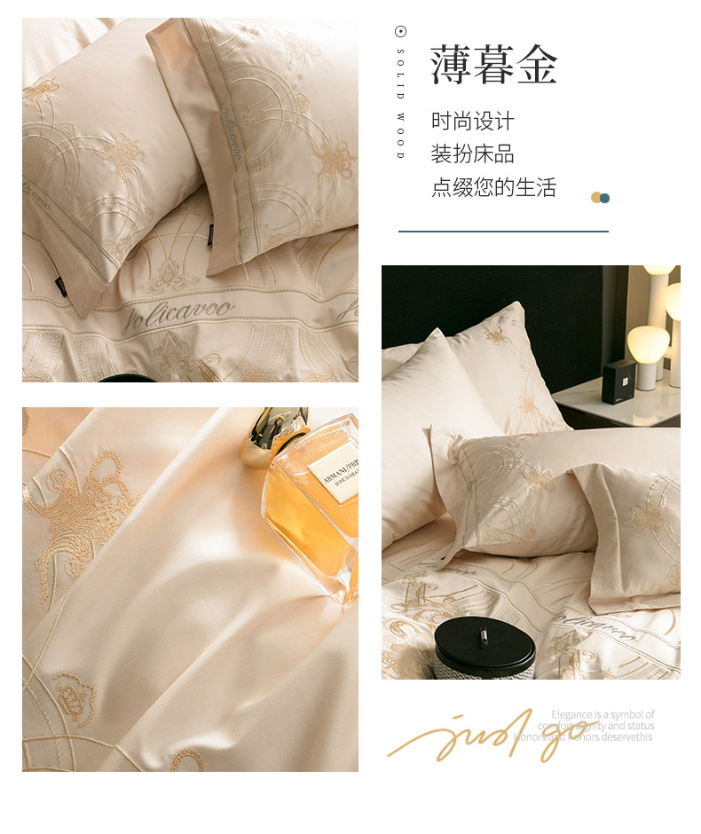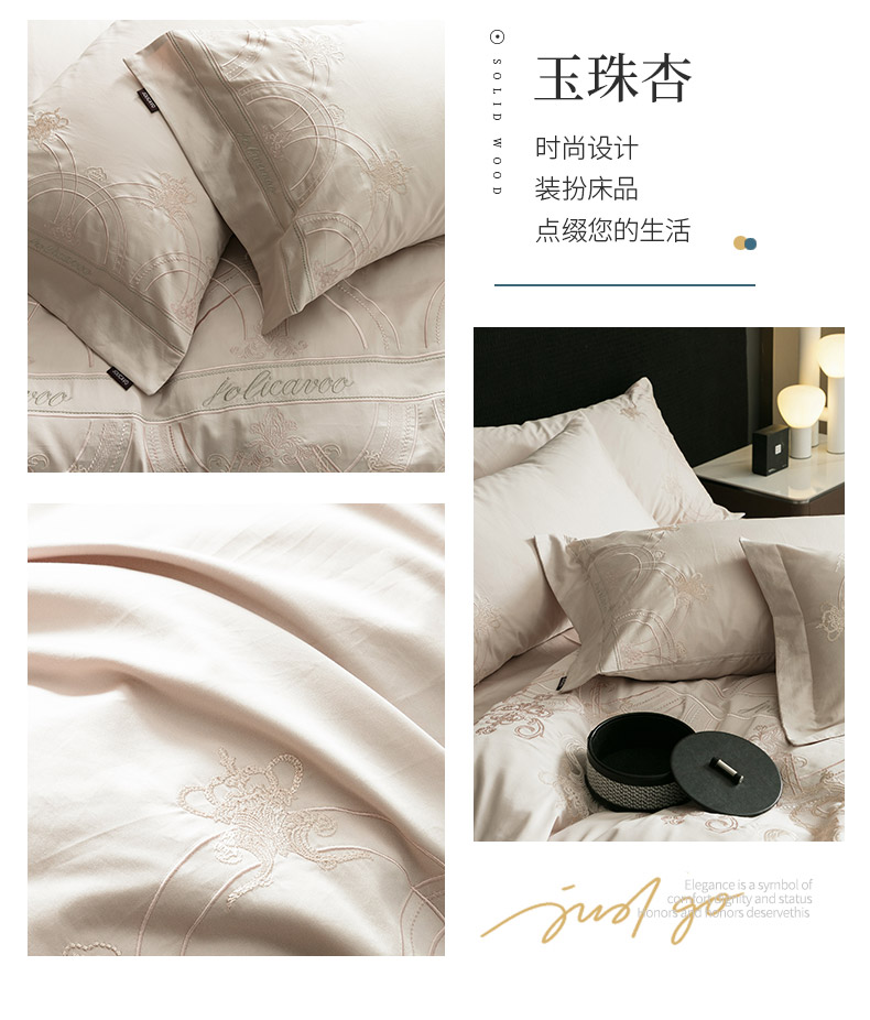 商品名称: 【A类母婴级】100支长绒棉四件套全棉纯棉轻奢风床单床笠款重工刺绣天丝棉床上用品 克里斯 玉珠杏