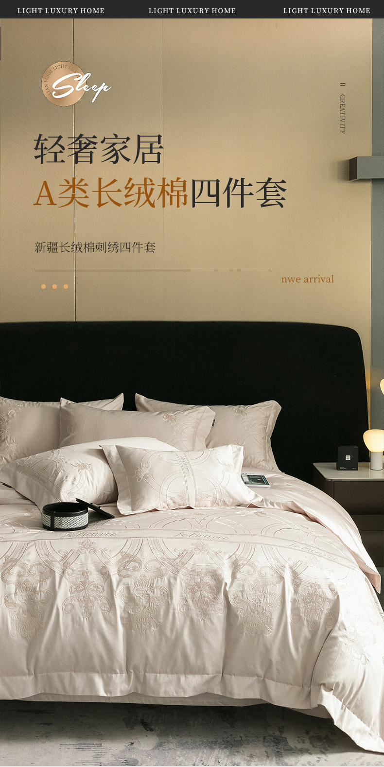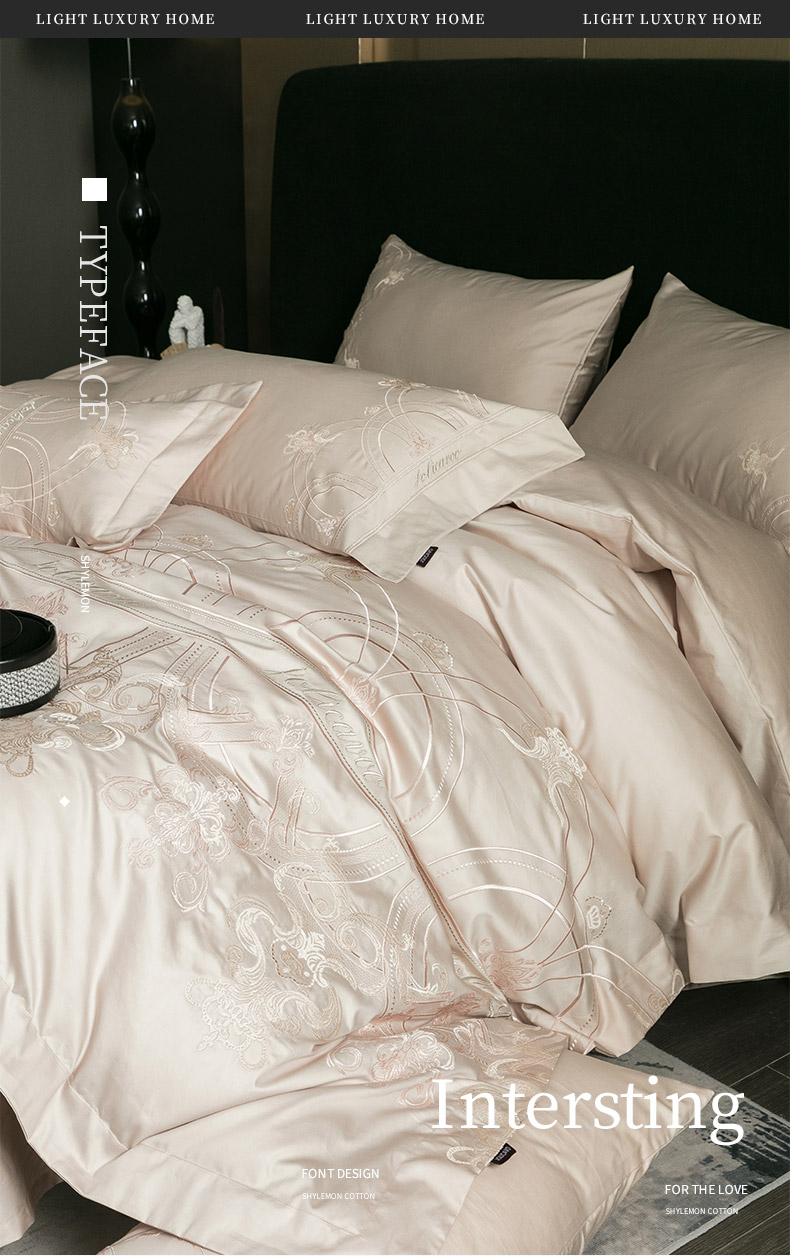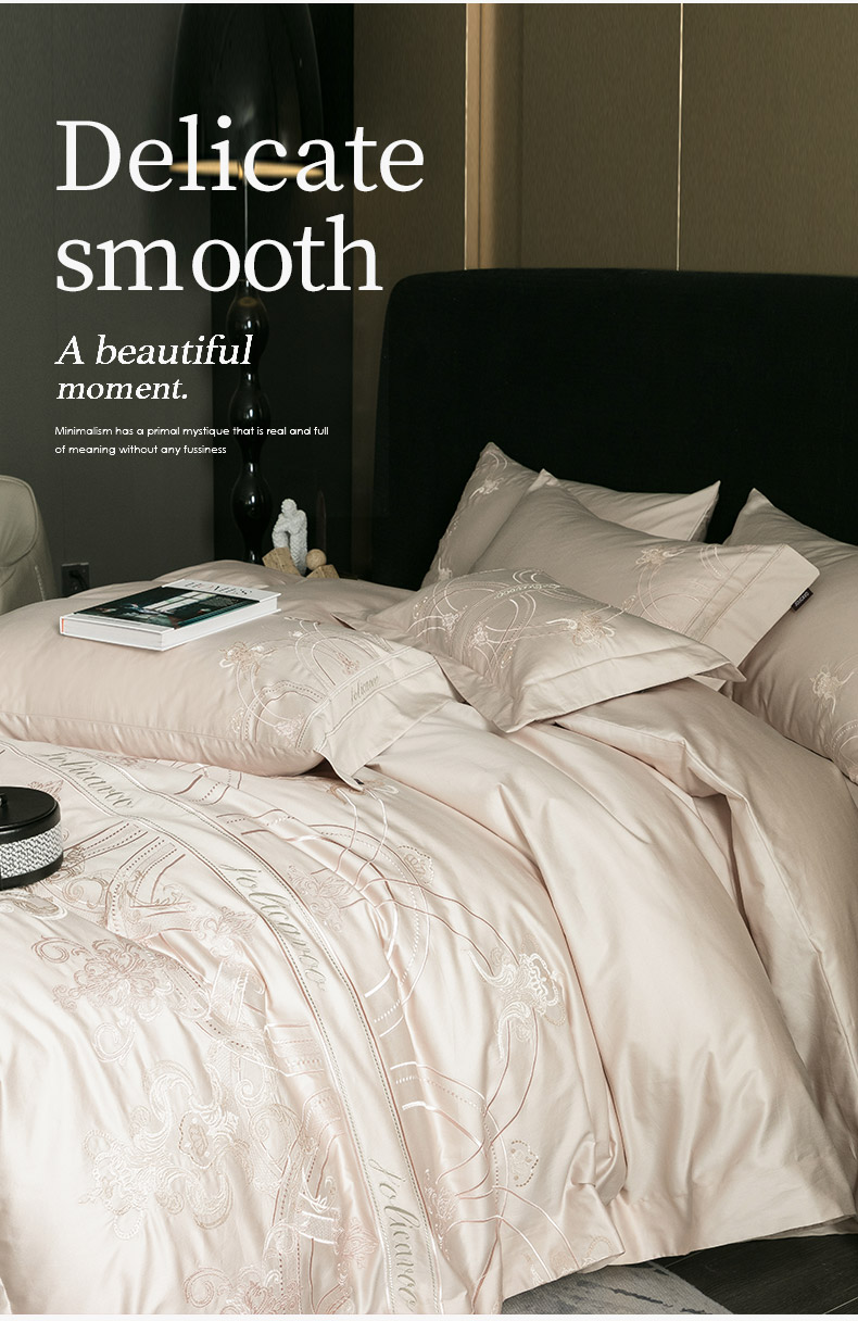 商品名称: 【A类母婴级】100支长绒棉四件套全棉纯棉轻奢风床单床笠款重工刺绣天丝棉床上用品 克里斯 玉珠杏