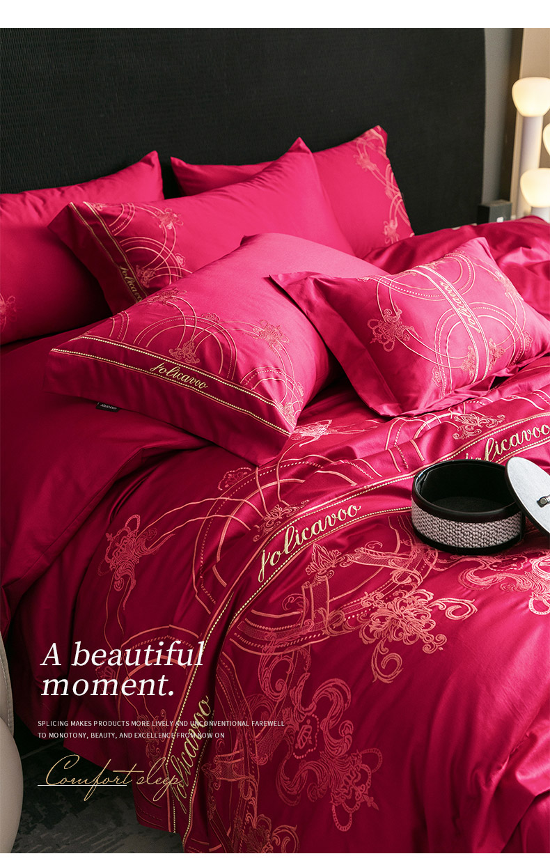 60支长绒棉婚庆四件套大红色结婚新疆棉喜庆床单被套简约纯色刺绣床上用品,海誓山盟-喜庆红,海誓山盟-新妍玉,玫瑰情缘-喜庆红,喜结连理-喜庆红