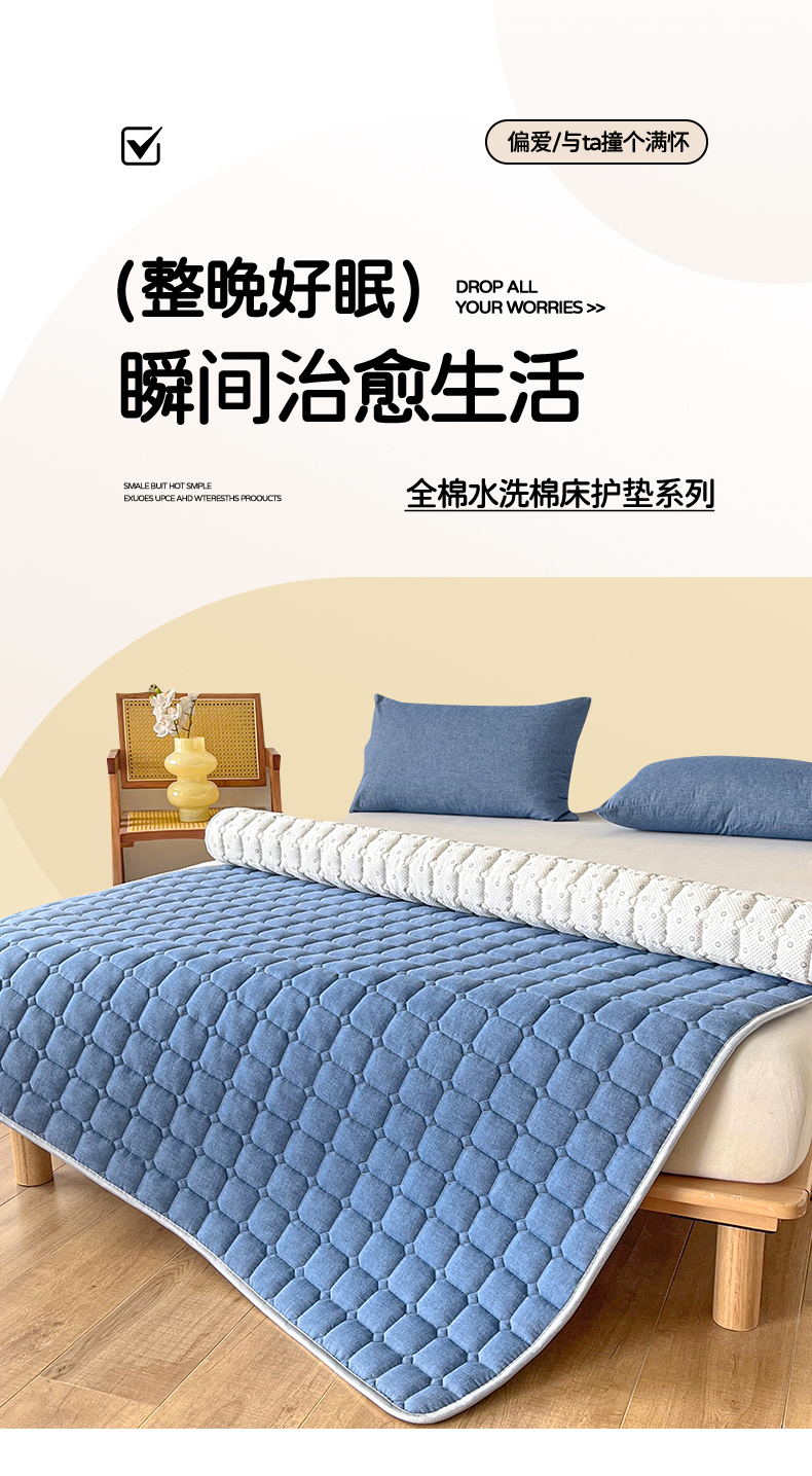 当前位置: 91家纺网 > 商品网购 > 床垫/床褥 > 普通床垫 > 卡伦家纺 2025新款全棉色织水洗棉夹棉床垫席梦思保护垫 牛仔兰