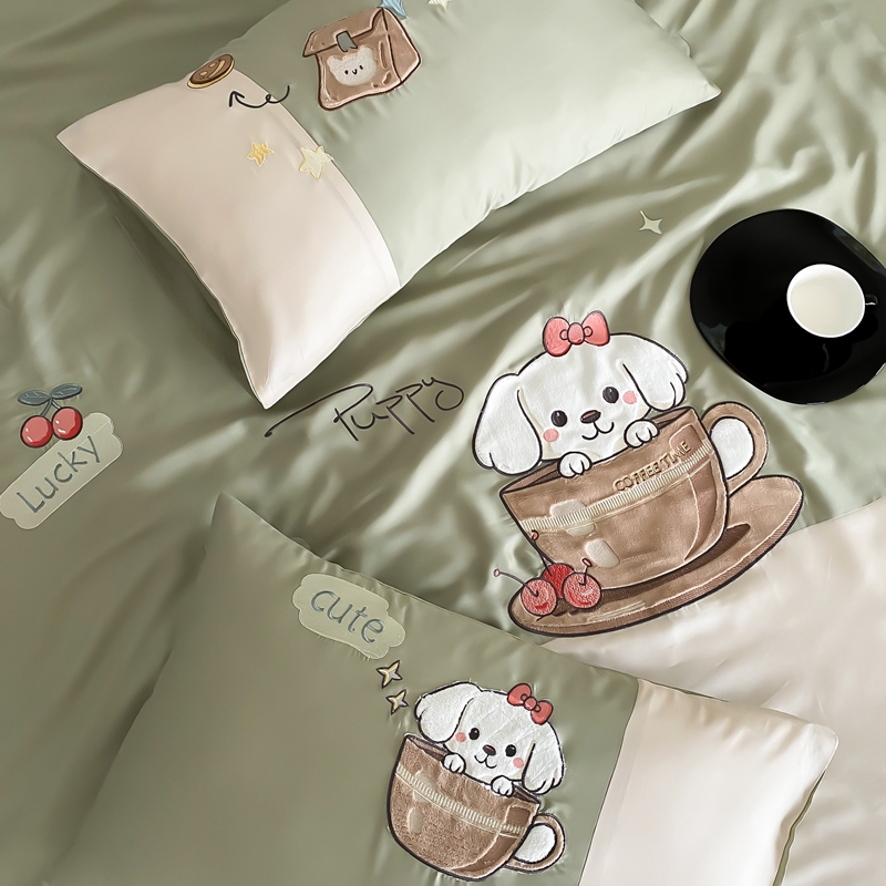 (总)优然居2020新款100支婴儿暖绒棉轻奢风刺绣四件套,大地黄加藏青,复古咖青,轻奢粉灰,霜绿大地色,霜绿复古色