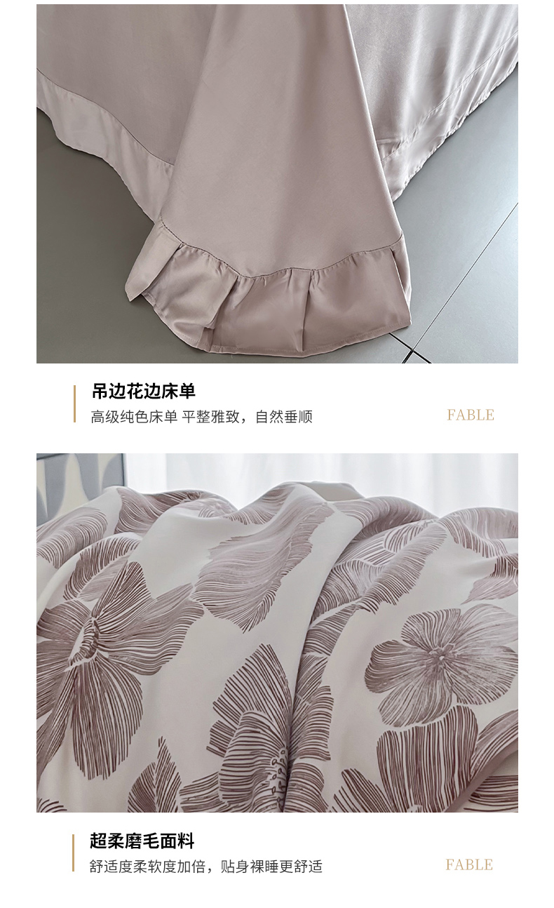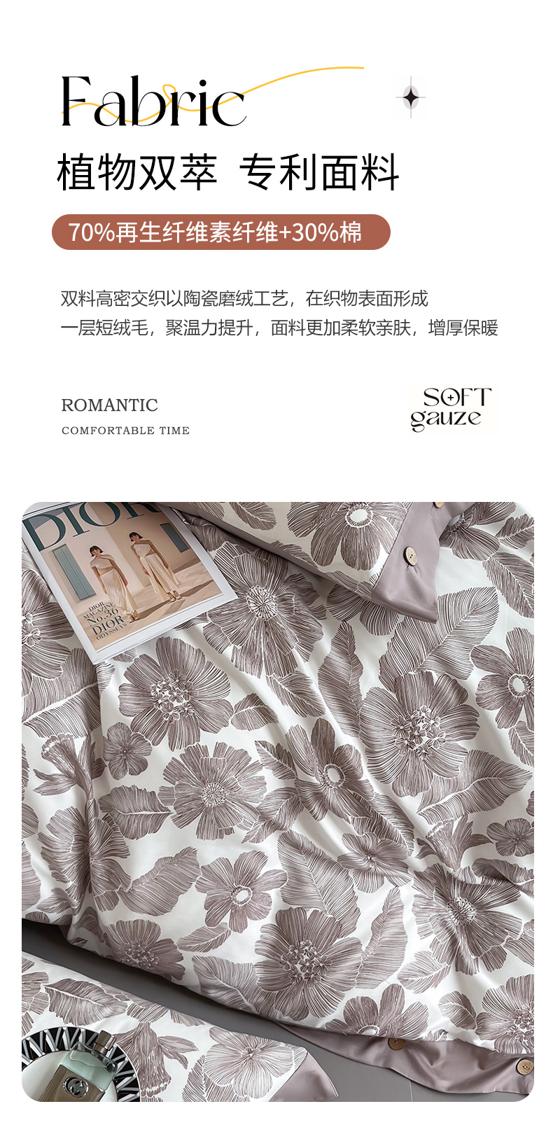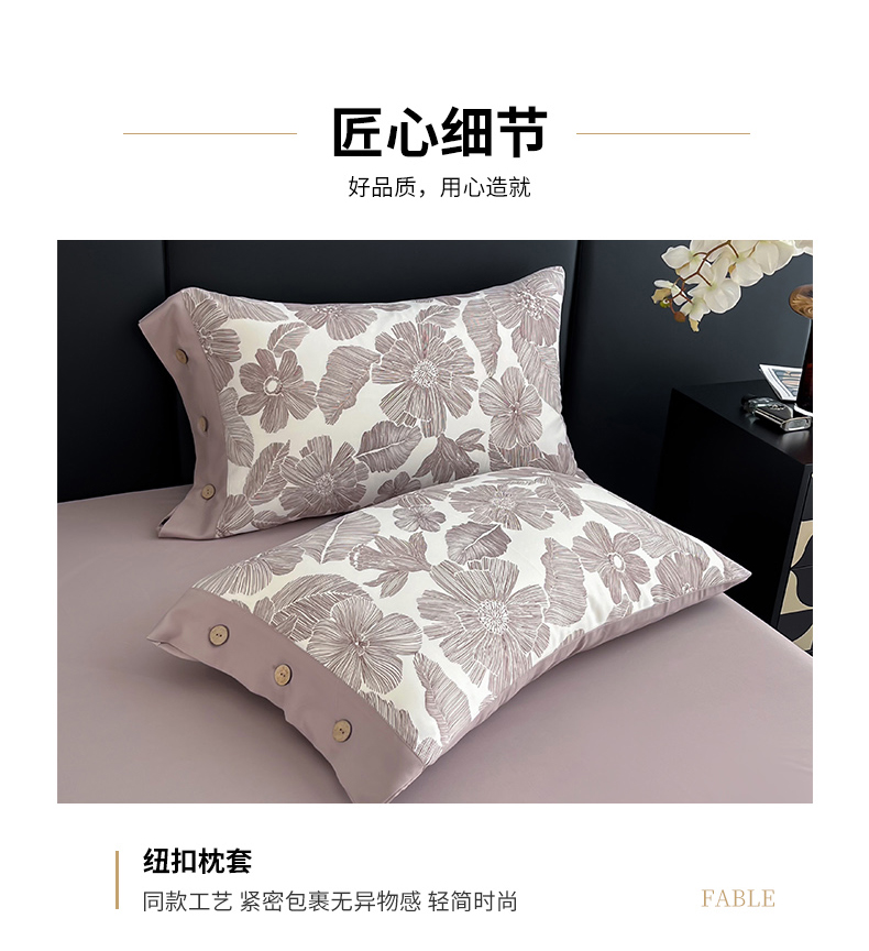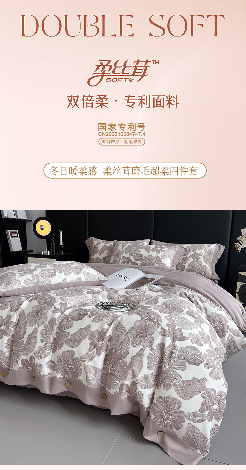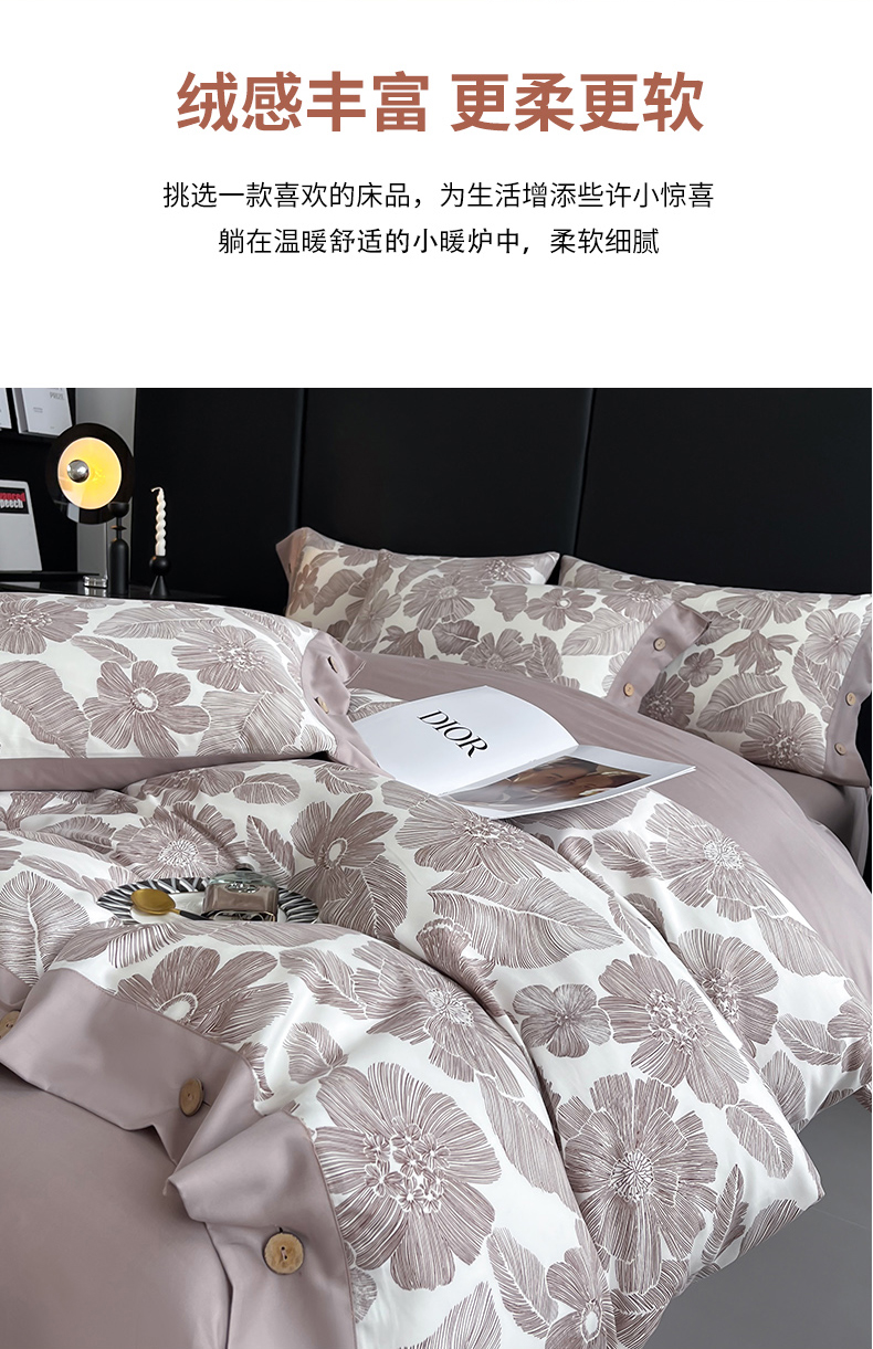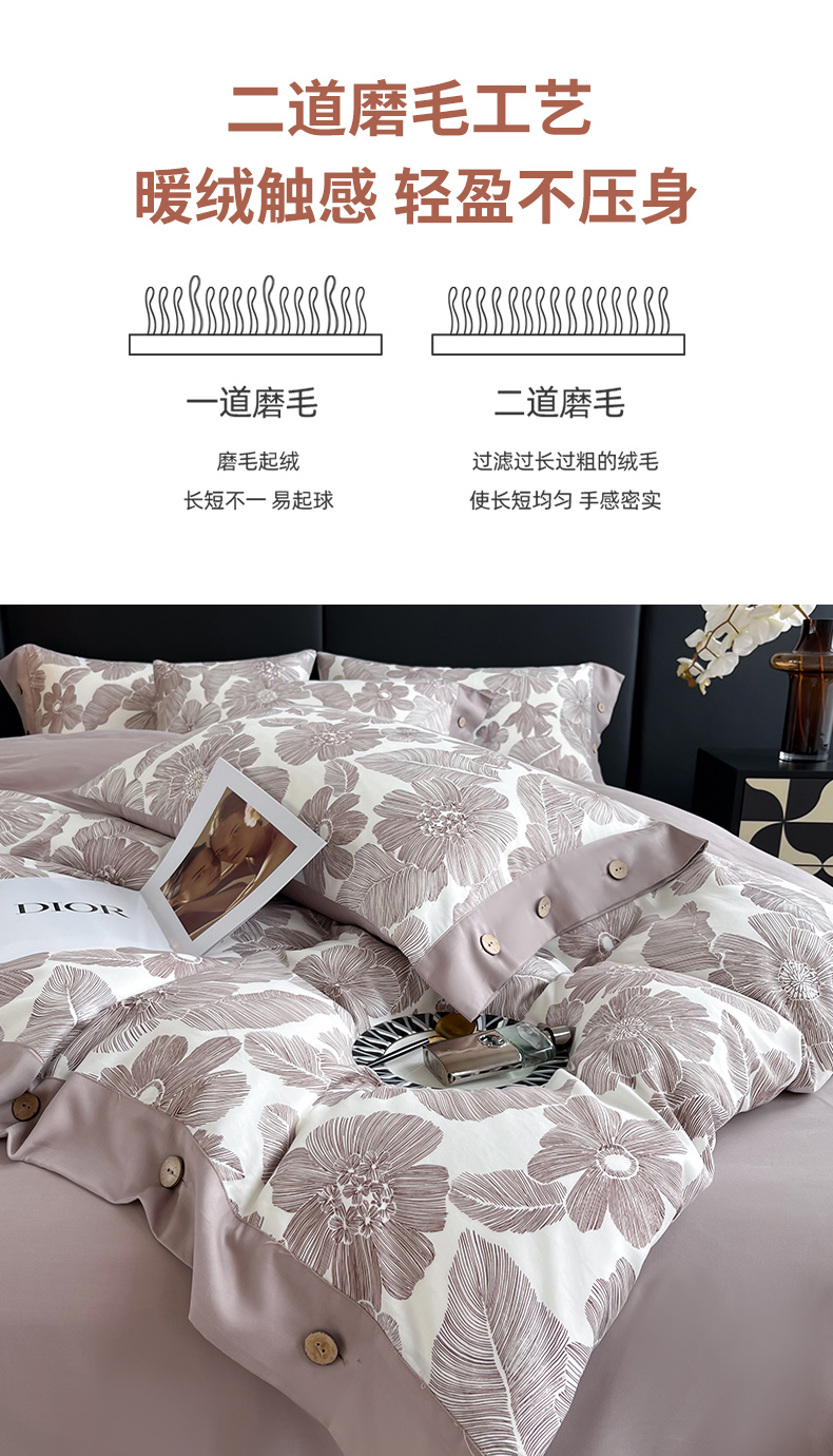 当前位置: 91家纺网 > 商品网购 > 床品套件 > 四件套 > 普通磨毛四件套 > 艾迪尚家纺 2025新款柔丝茸磨毛印花纽扣款四件套 叶蓓