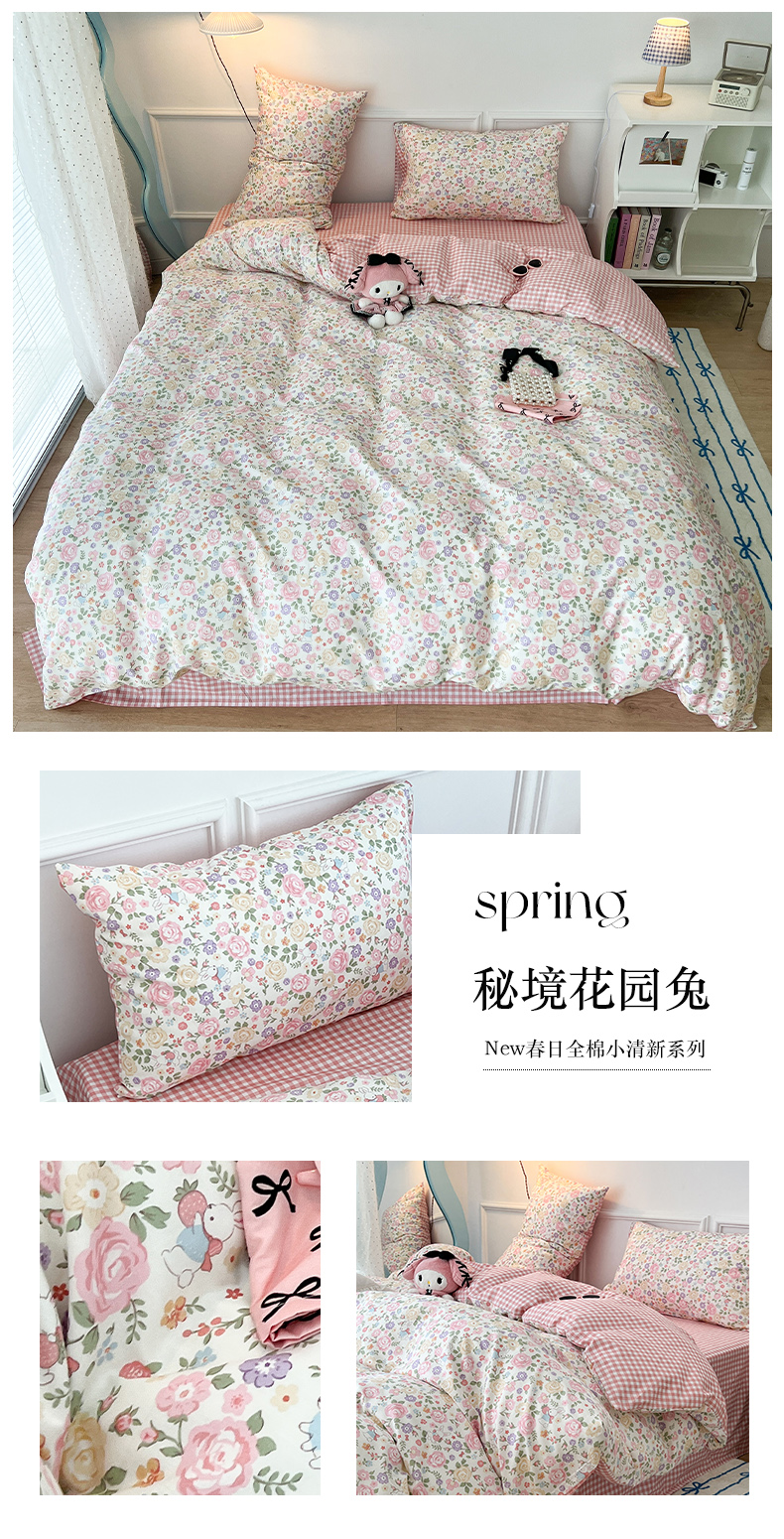 2024新款13070跑量款全棉四件套--小清新系列 秘境花园兔