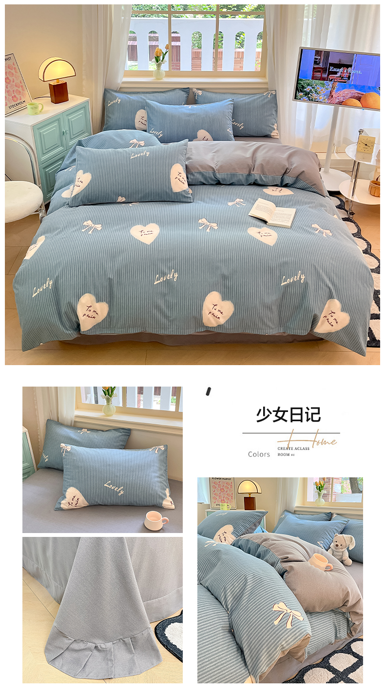当前位置: 91家纺网 > 商品网购 > 床品套件 > 四件套 > 普通磨毛四件套 > 莱米家纺 2024新款全棉加厚磨毛印花四件套 少女日记