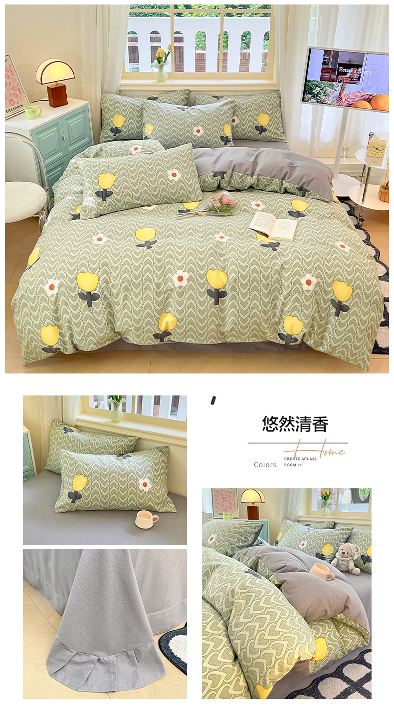 当前位置: 91家纺网 > 商品网购 > 床品套件 > 四件套 > 普通磨毛四件套 > 莱米家纺 2024新款全棉加厚磨毛印花四件套 悠然清香