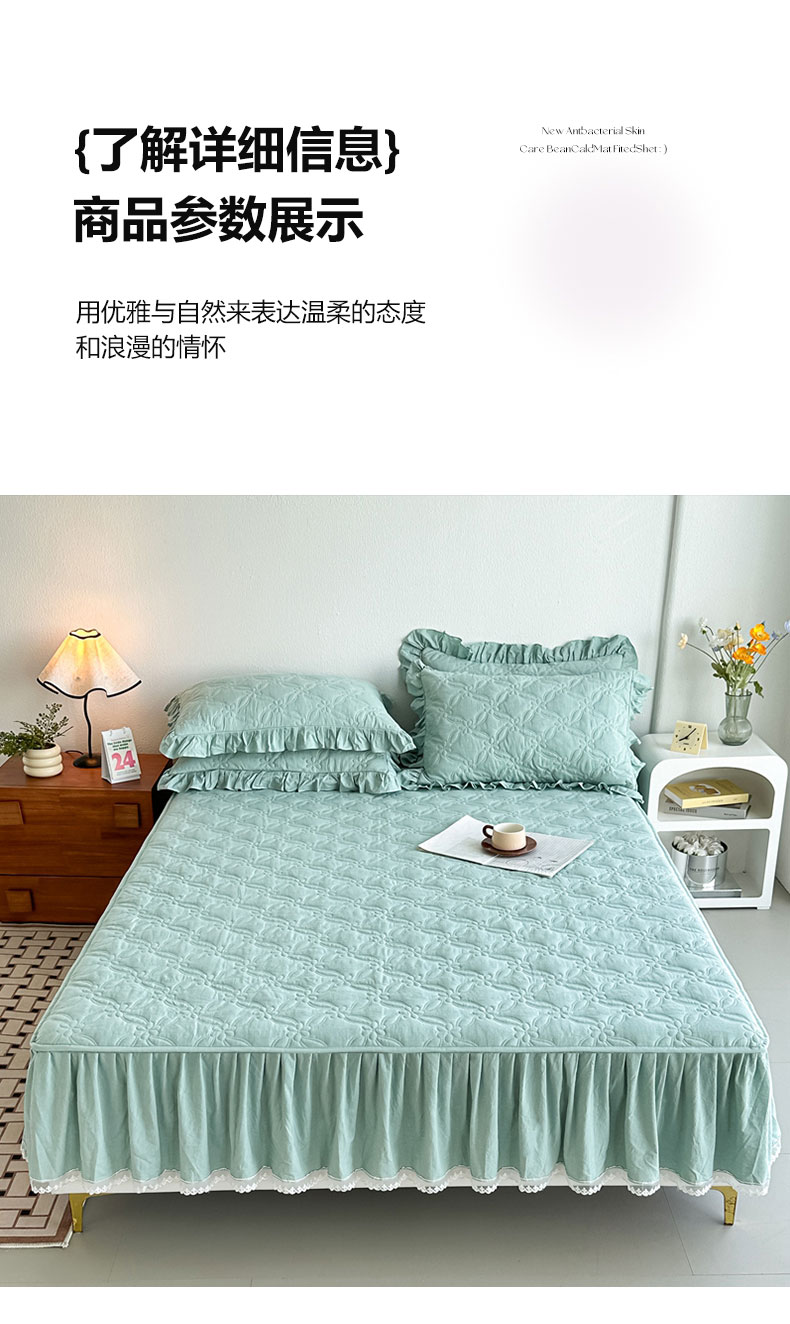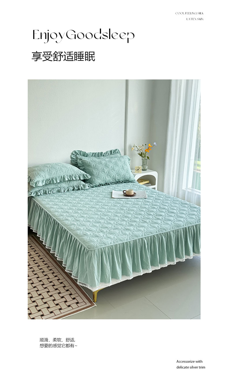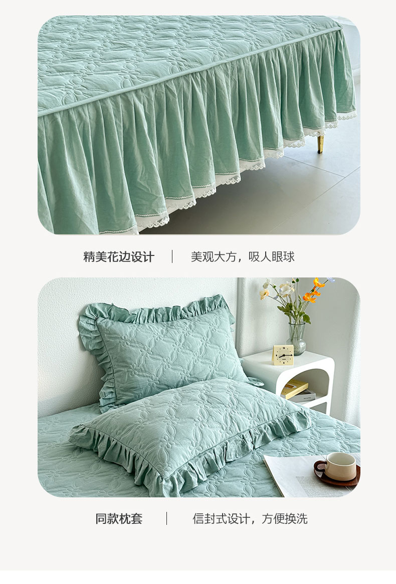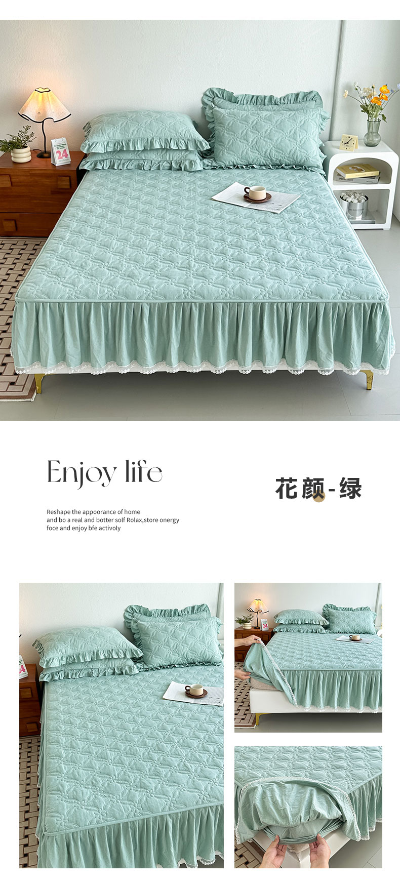 商品名称:忘忧草 2024新款色织水洗全棉床笠式床裙夹棉款-花颜系列 花颜-绿