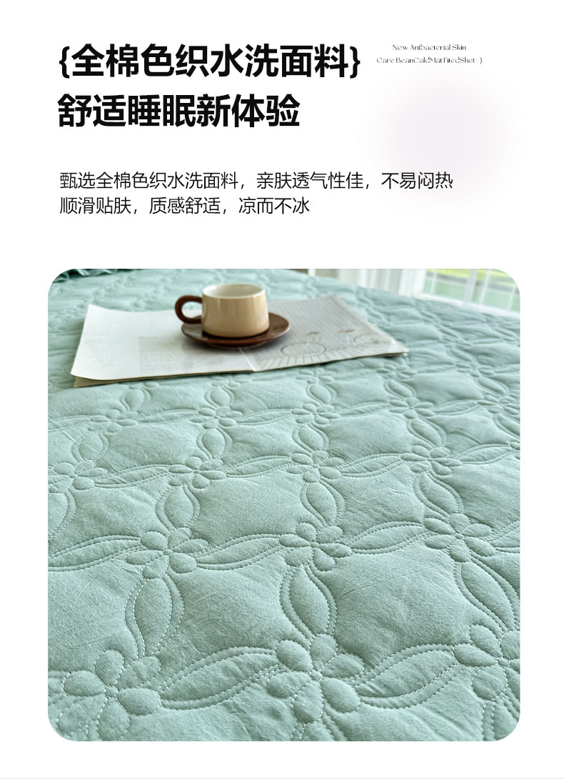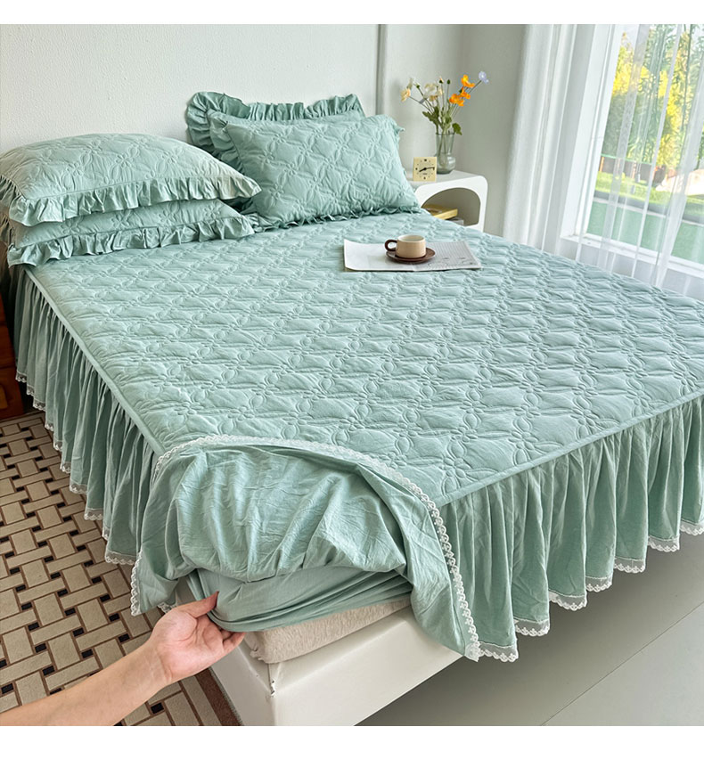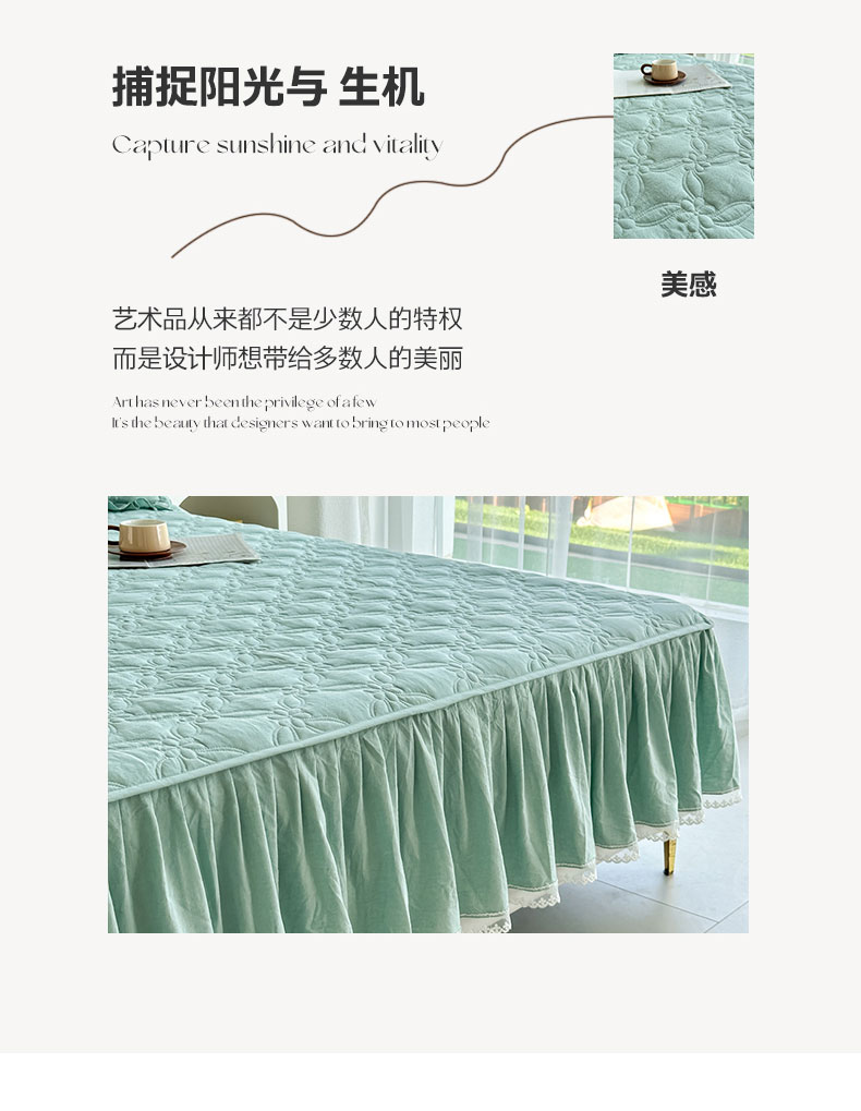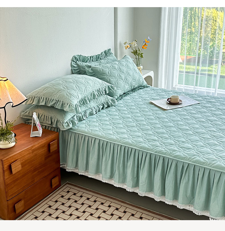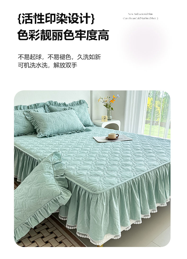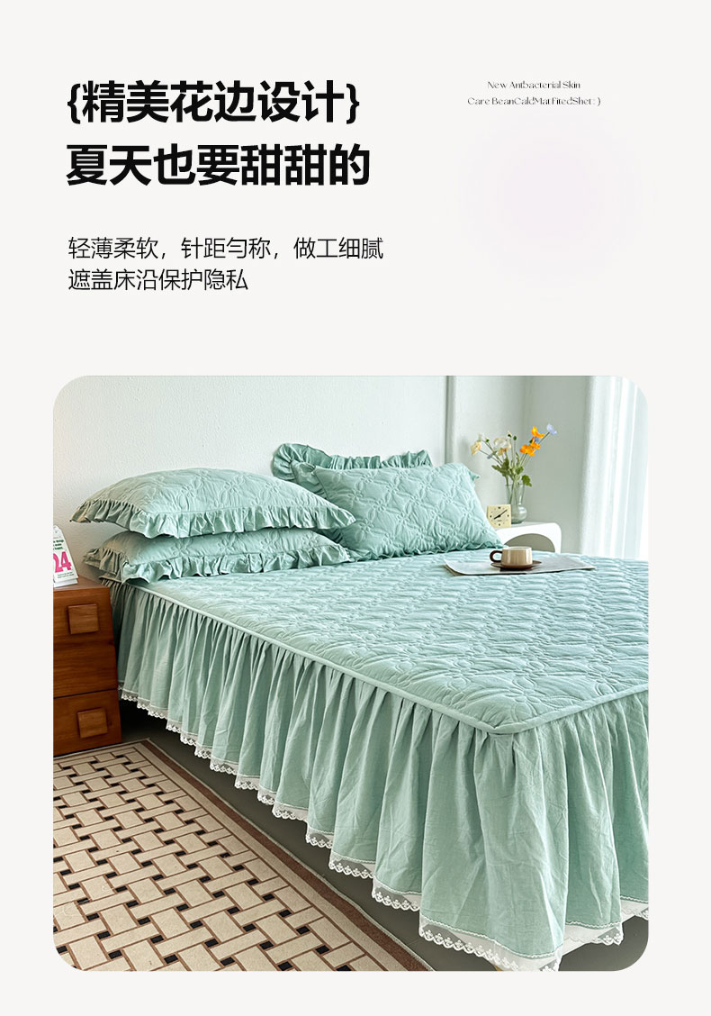 商品名称:忘忧草 2024新款色织水洗全棉床笠式床裙夹棉款-花颜系列 花颜-绿