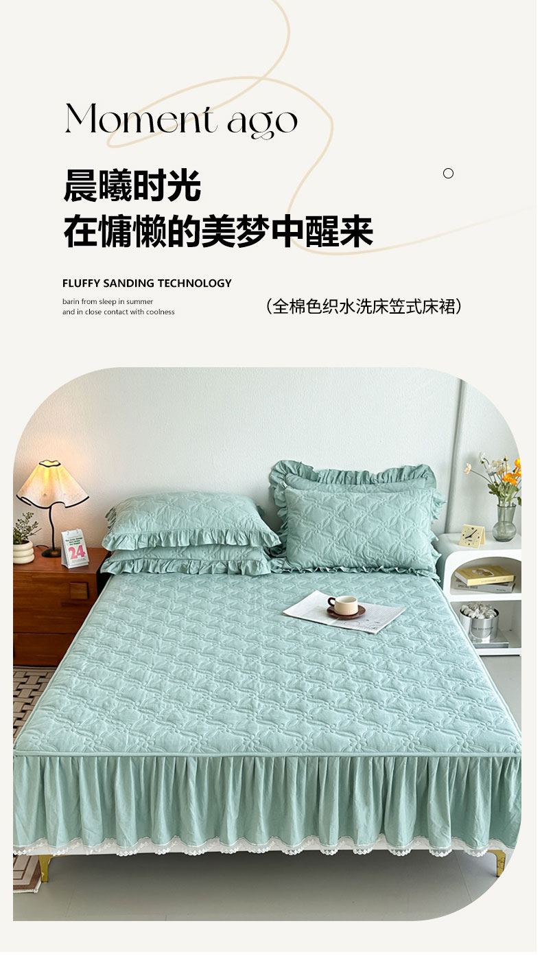 (总)忘忧草 2025新款色织水洗全棉床笠式床裙夹棉款纯棉花边床笠-花颜系列,花颜-白,花颜-粉,花颜-灰,花颜-咖,花颜-蓝,花颜-绿
