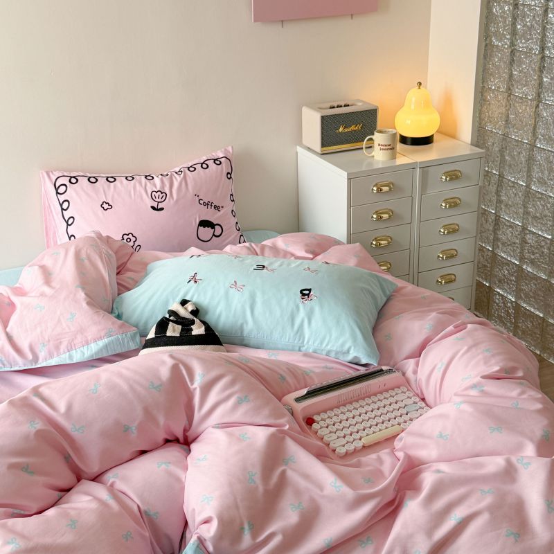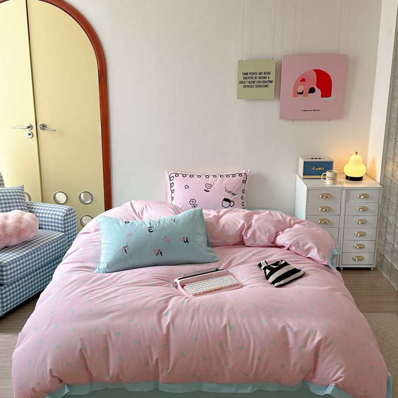 商品名称:2024新款水洗棉宽边小清新四件套 少女时代