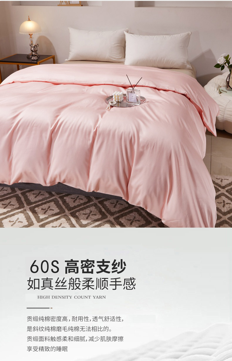 晶缦家纺 2025新款全棉60支贡缎长绒棉纯色单品被套单件60S素色纯棉单被套多规格被罩活性印染 琳澜-浅粉玉