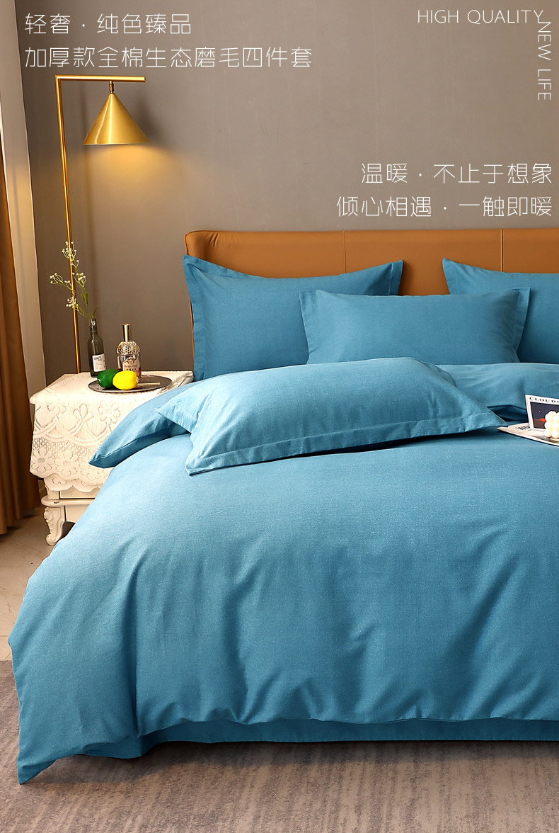 当前位置: 91家纺网 > 商品网购 > 床品套件 > 四件套 > 普通磨毛四件套 > 晶缦家纺 2024新款加厚纯棉喷气全棉纯色生态磨毛多规格四件套 纯依-湖蓝