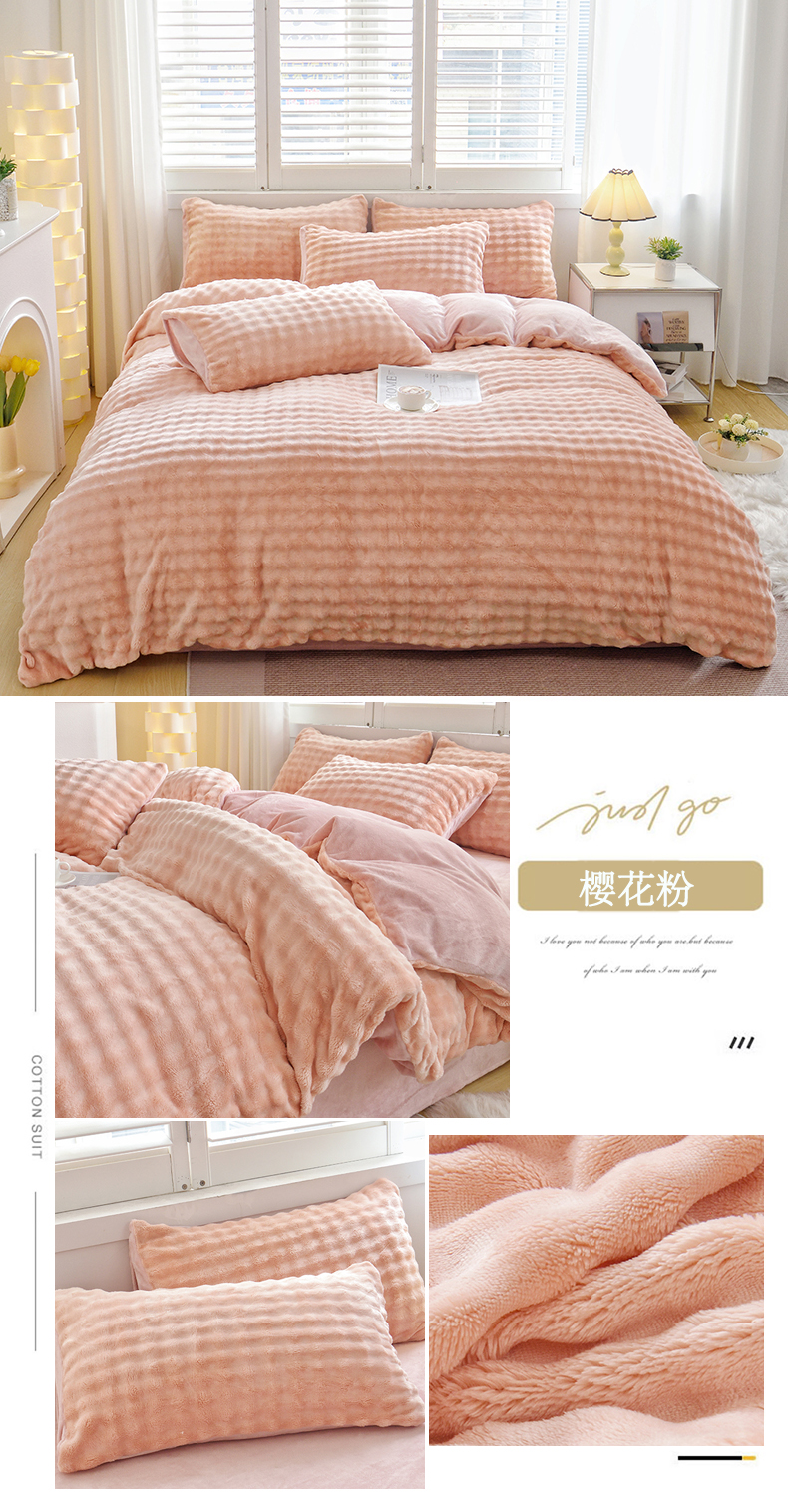 商品名称:启优家纺 2024新款简约兔兔绒活性印染四件套 樱花粉