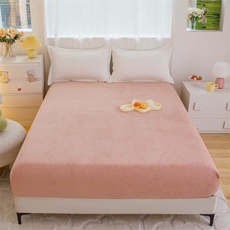 锦罗绣 2024新款230克纯色牛奶绒单床笠 暖橘
