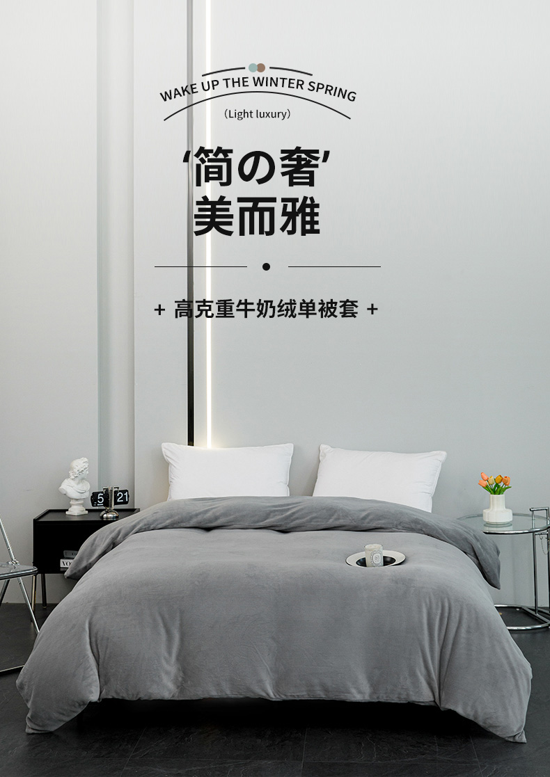 • 91家纺网 家纺一手货源 找家纺 锦罗绣 2024新款230克纯色牛奶绒单被套 银灰-