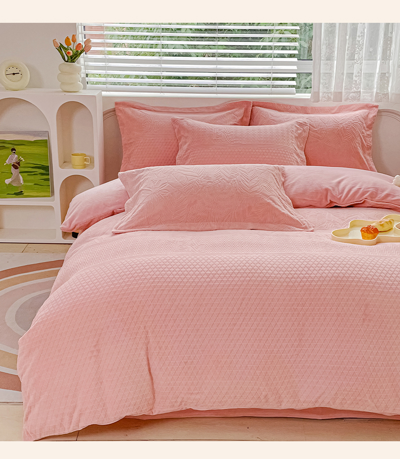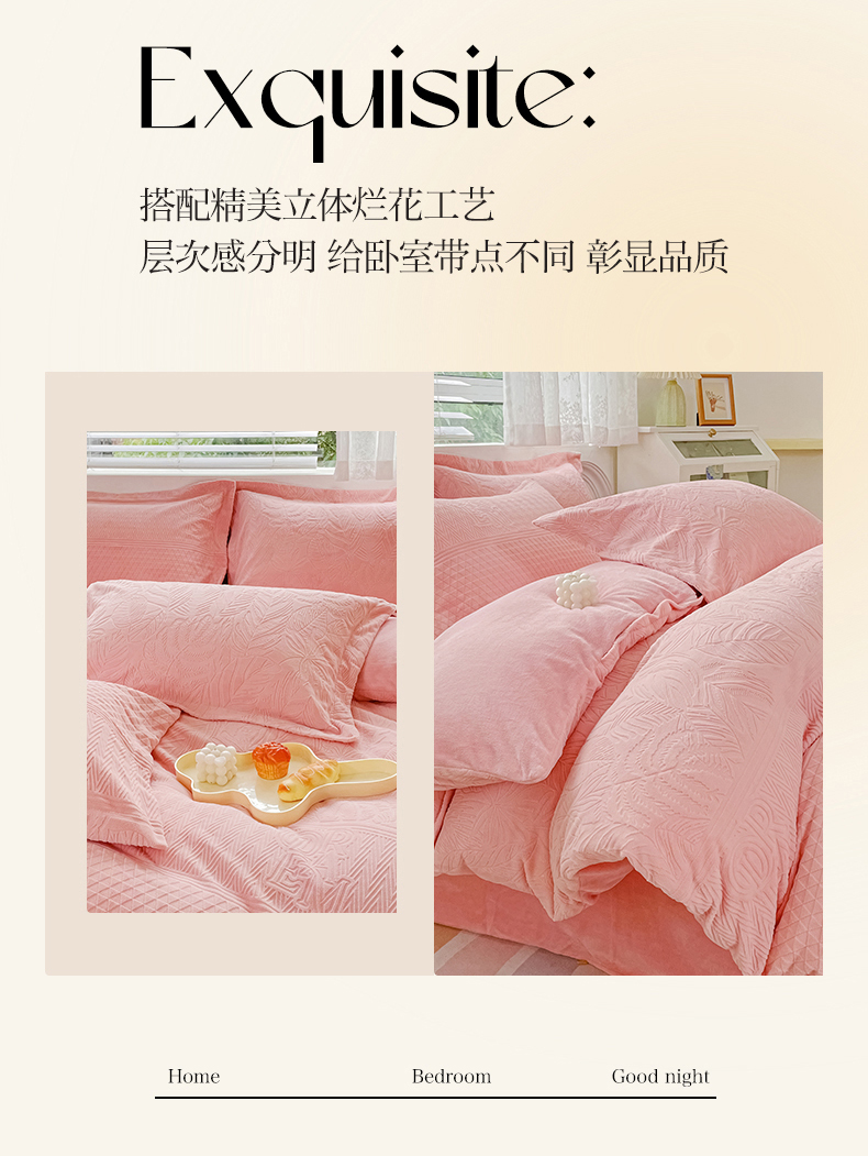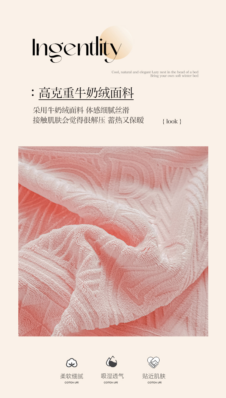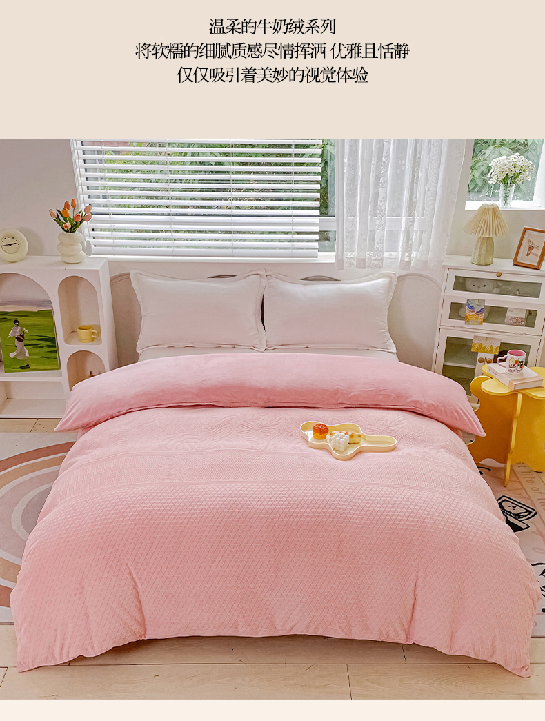当前位置: 91家纺网 > 商品网购 > 床品套件 > 四件套 > 牛奶绒四件套 > 锦罗绣 2024新款全消光230克牛奶绒烂花绒提花四件套 格韵