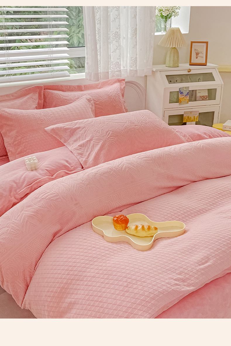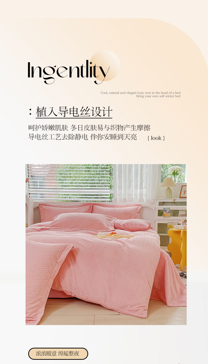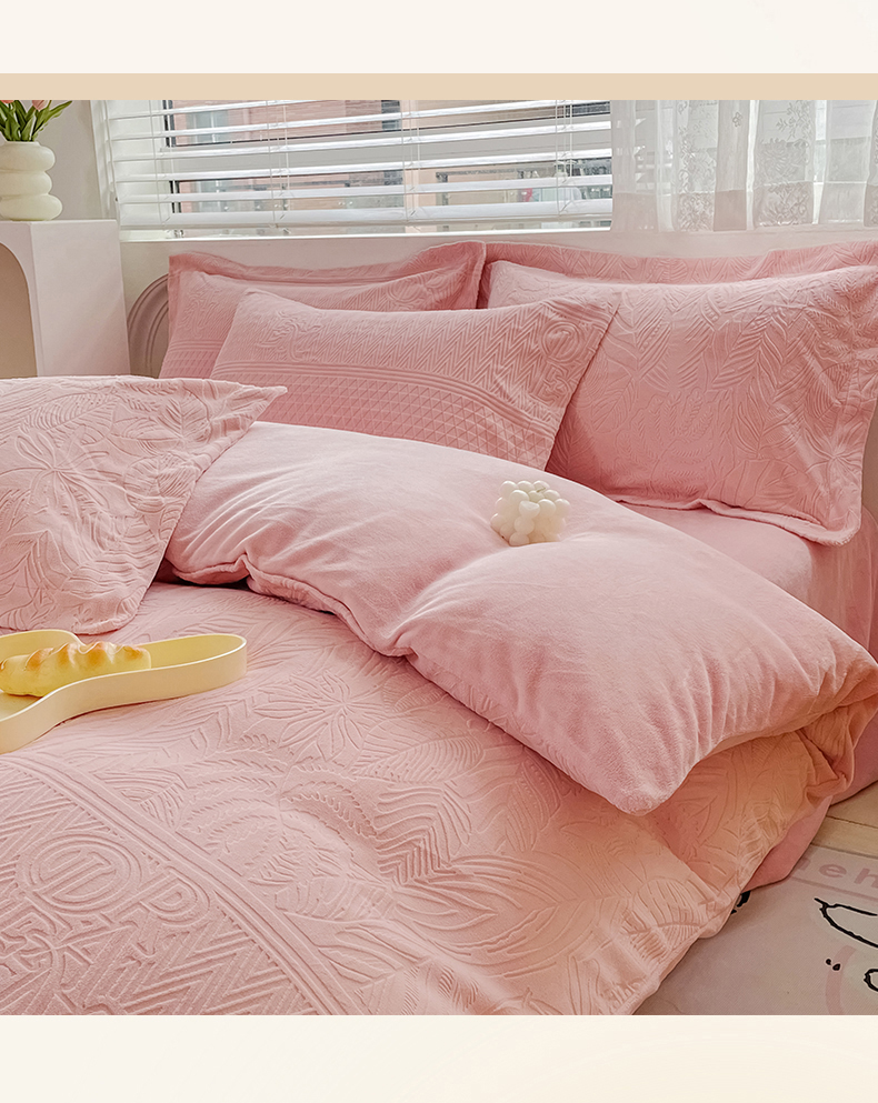 当前位置: 91家纺网 > 商品网购 > 床品套件 > 四件套 > 牛奶绒四件套 > 锦罗绣 2024新款全消光230克牛奶绒烂花绒提花四件套 格韵