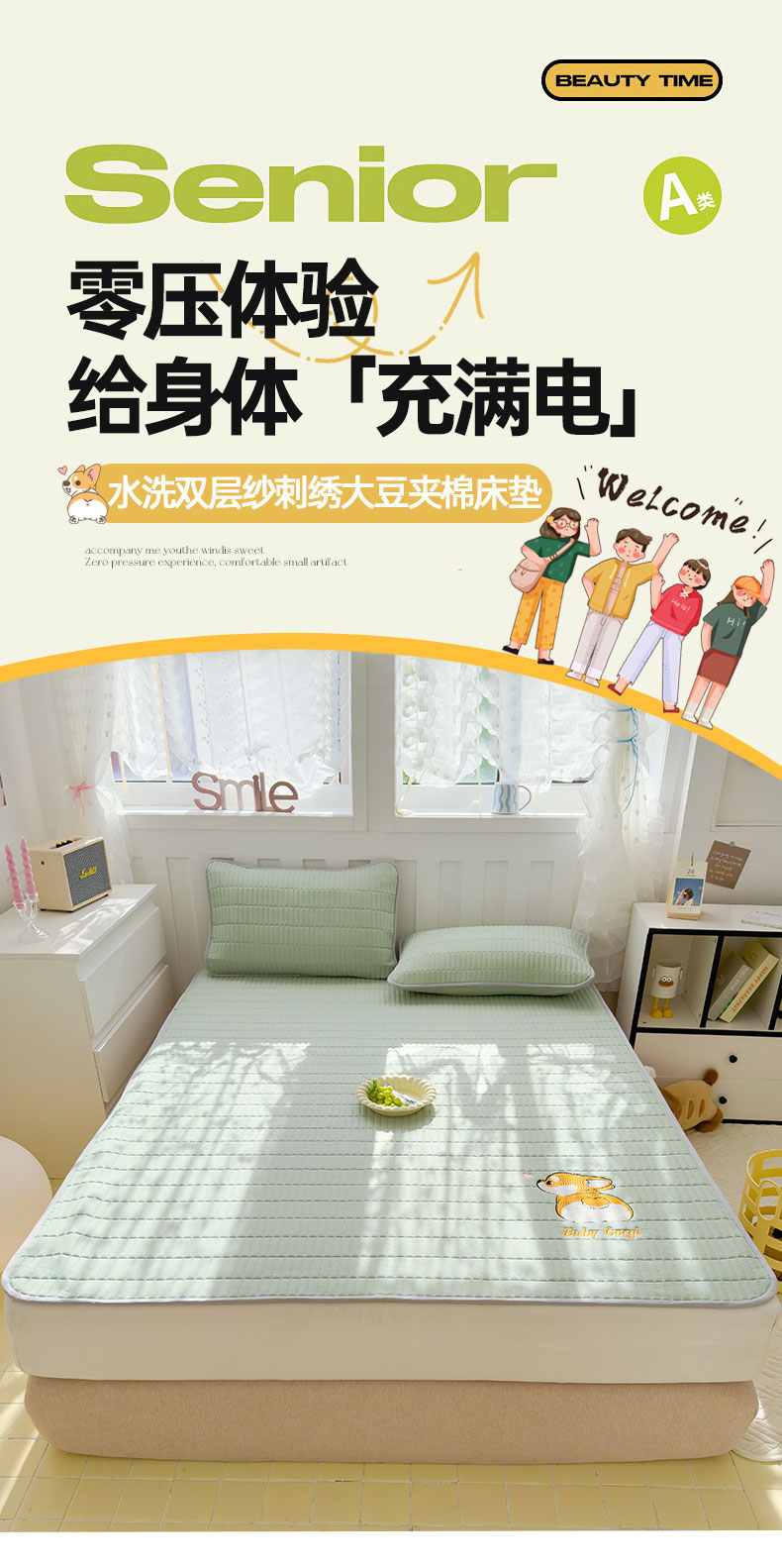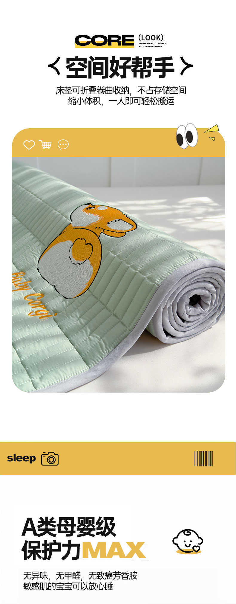 当前位置: 91家纺网 > 商品网购 > 床垫/床褥 > 普通床垫 > 灰鲸 2025新款水洗双层纱萌物刺绣大豆夹棉床垫 柯基baby-薄荷绿