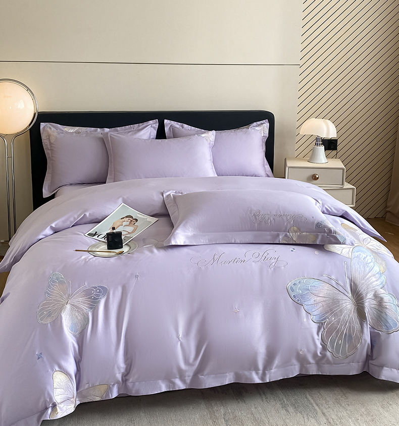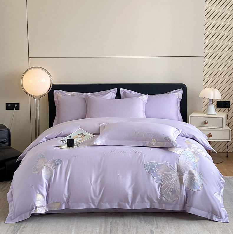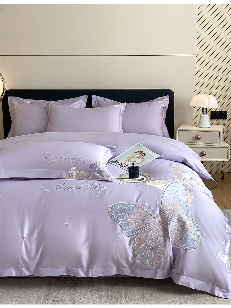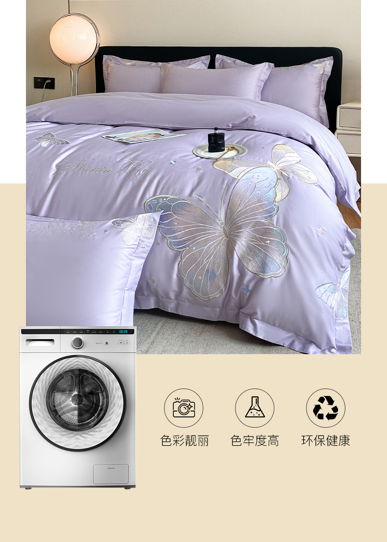 理想家家纺 2024新款13372全棉刺绣四件套系列-梦蝶 紫