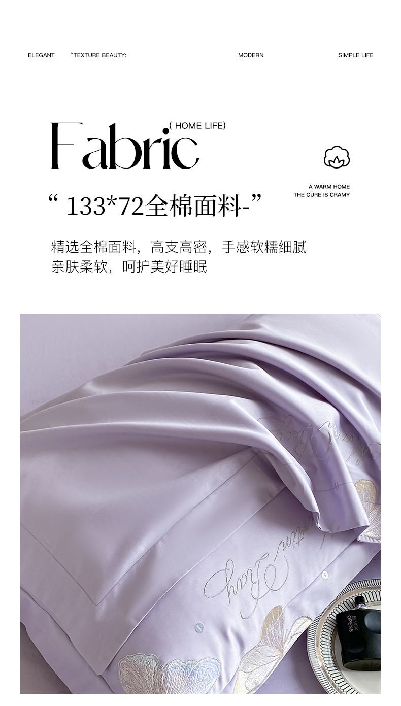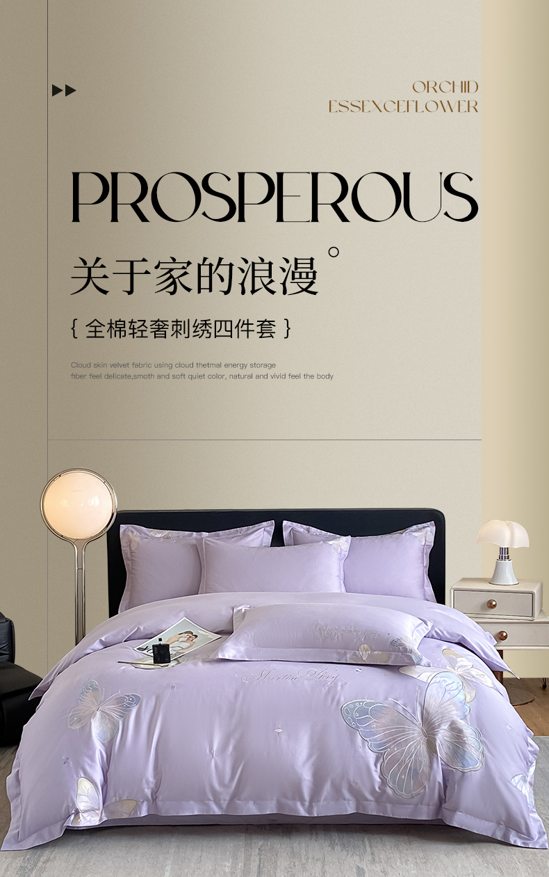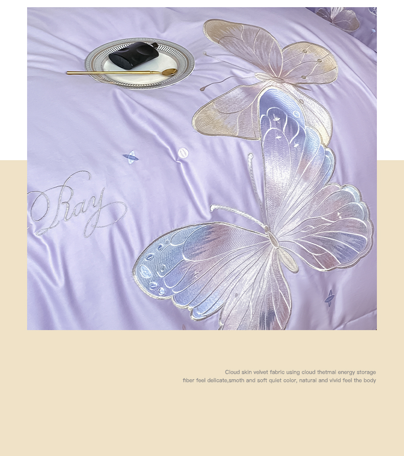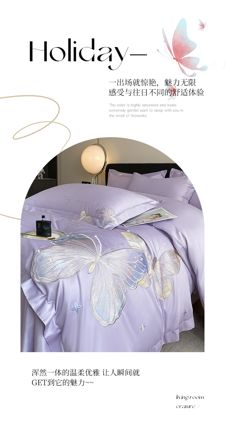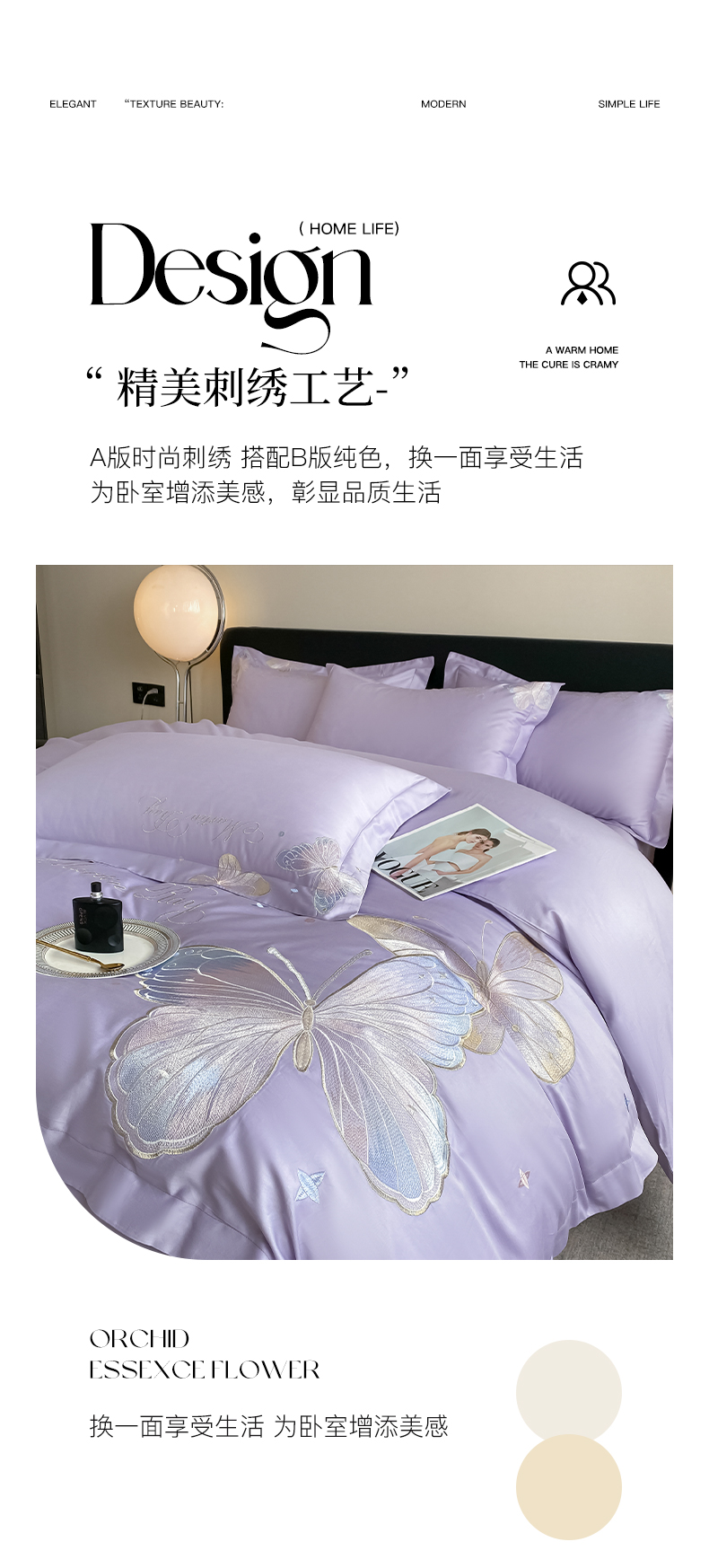 商品名称:理想家家纺 2024新款13372全棉刺绣四件套系列-梦蝶 紫