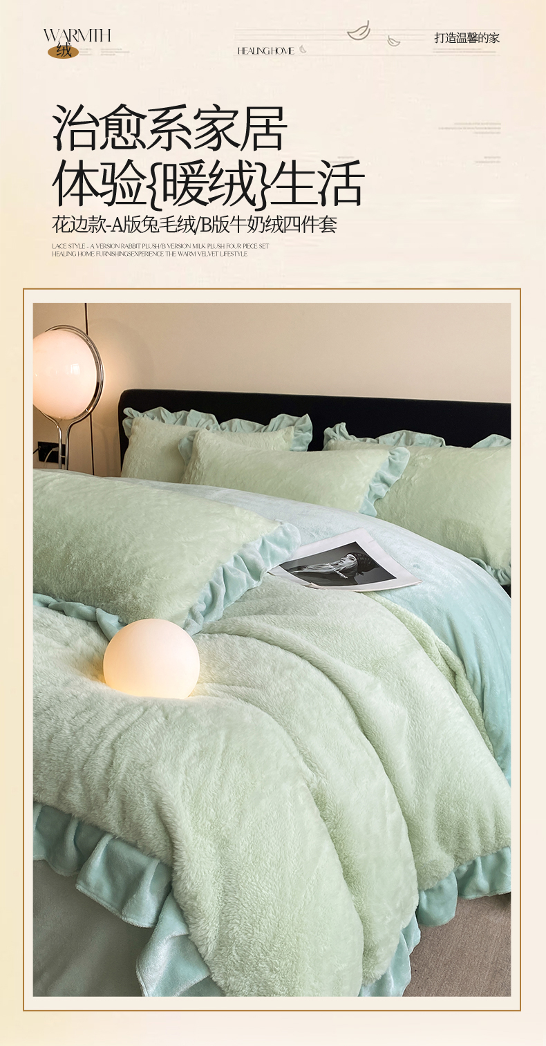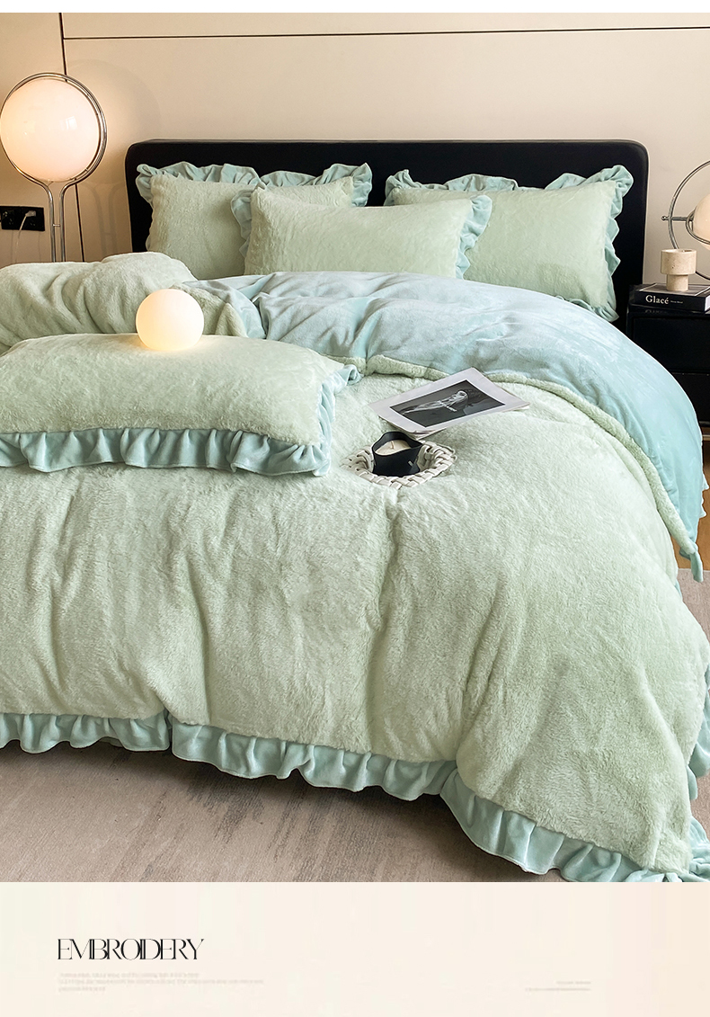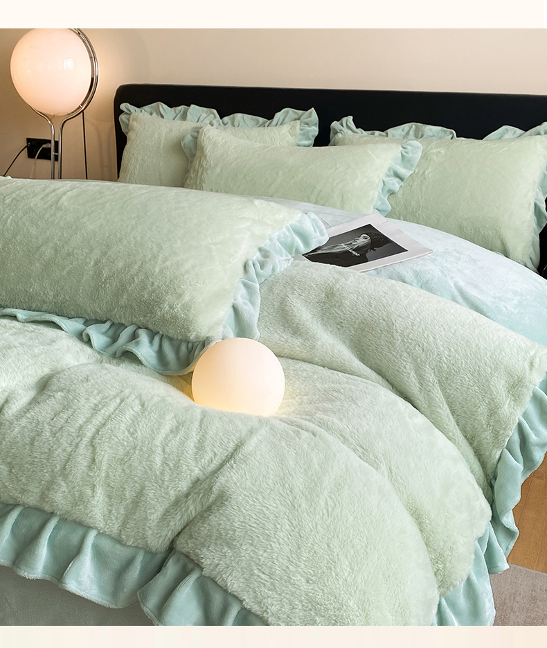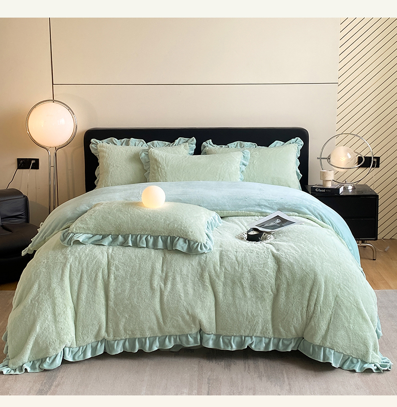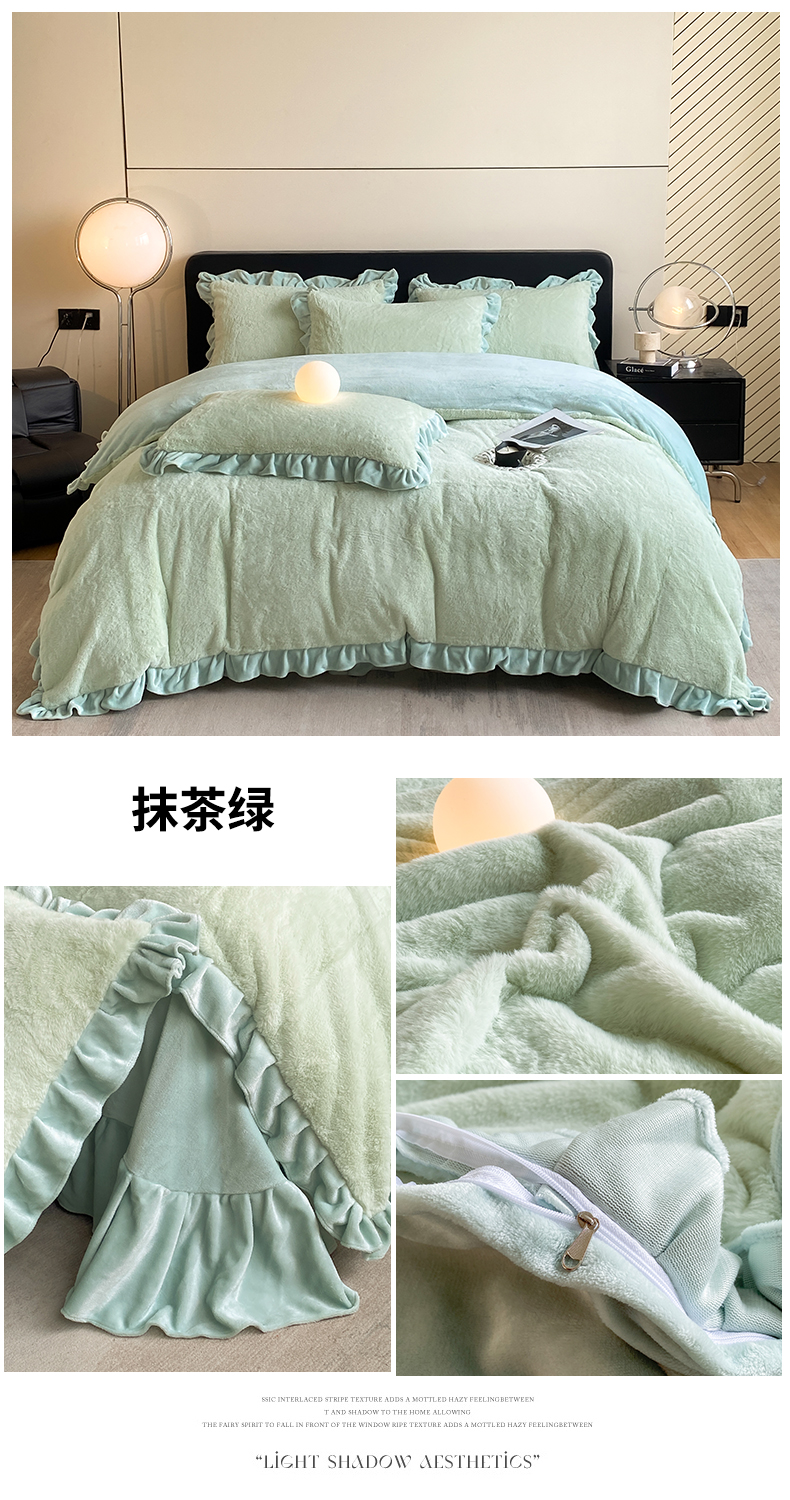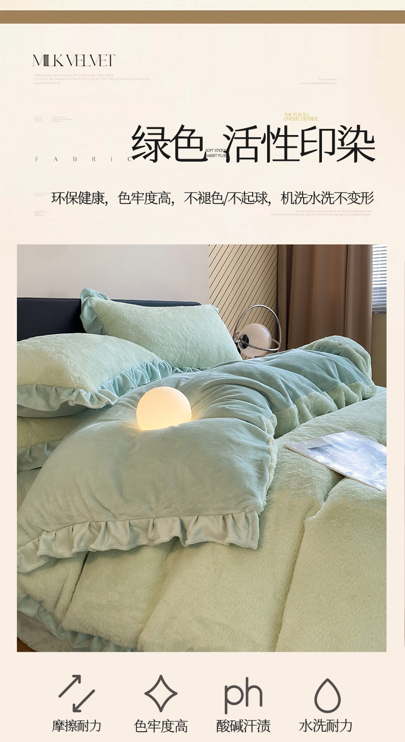 商品名称:2024新款AB版兔毛绒韩版四件套 抹茶绿